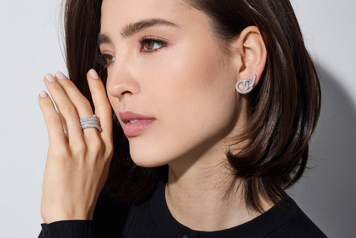 HUXLEY 18K WHITE GOLD AND ALL DIAMOND ELONGATED COIL LINK EARRINGS