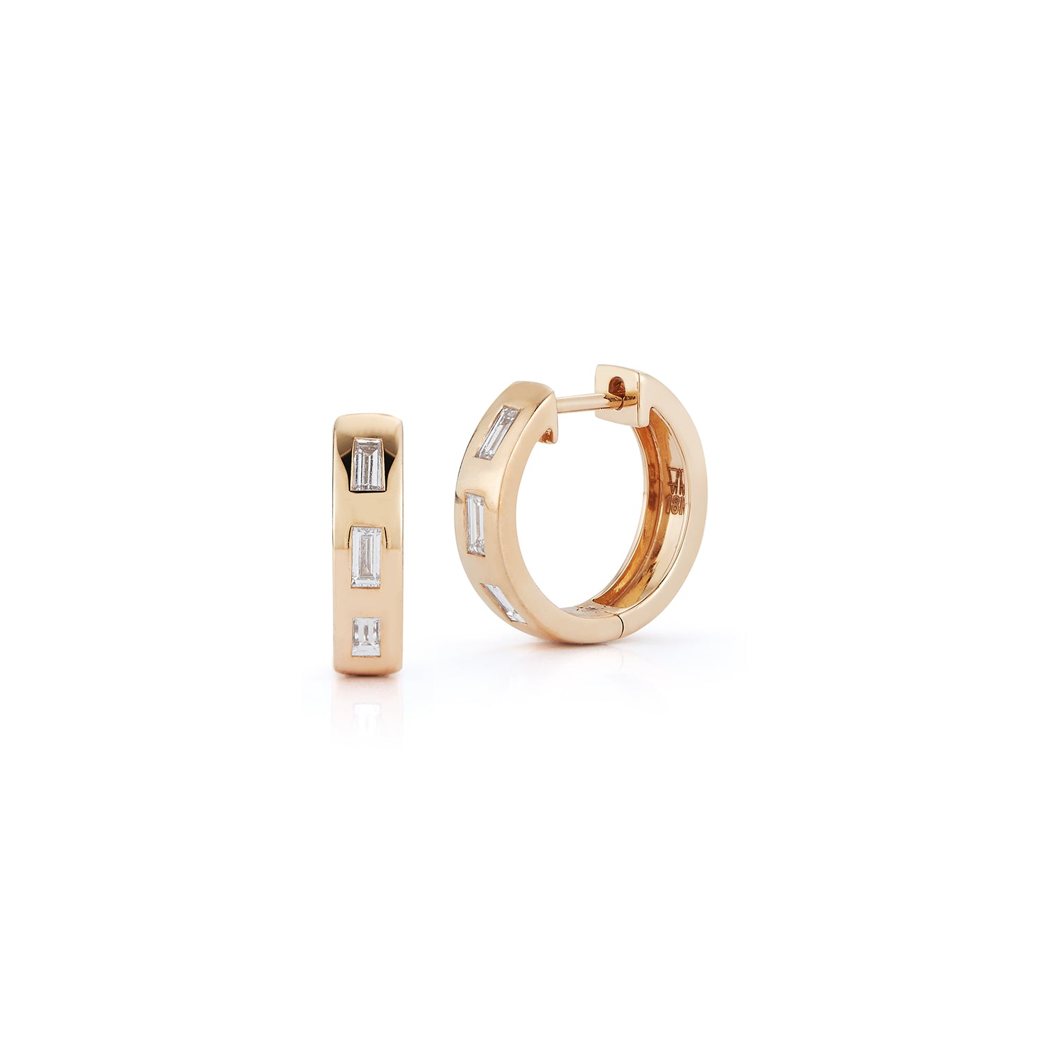 OTTOLINE 18K 3 BAGUETTE DIAMOND HUGGIE