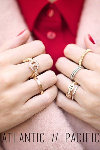 Two Tone 18k Rose Gold Black Rhodium Sapphire And 18k White Gold White Diamond 3mm Cubed Band Ring