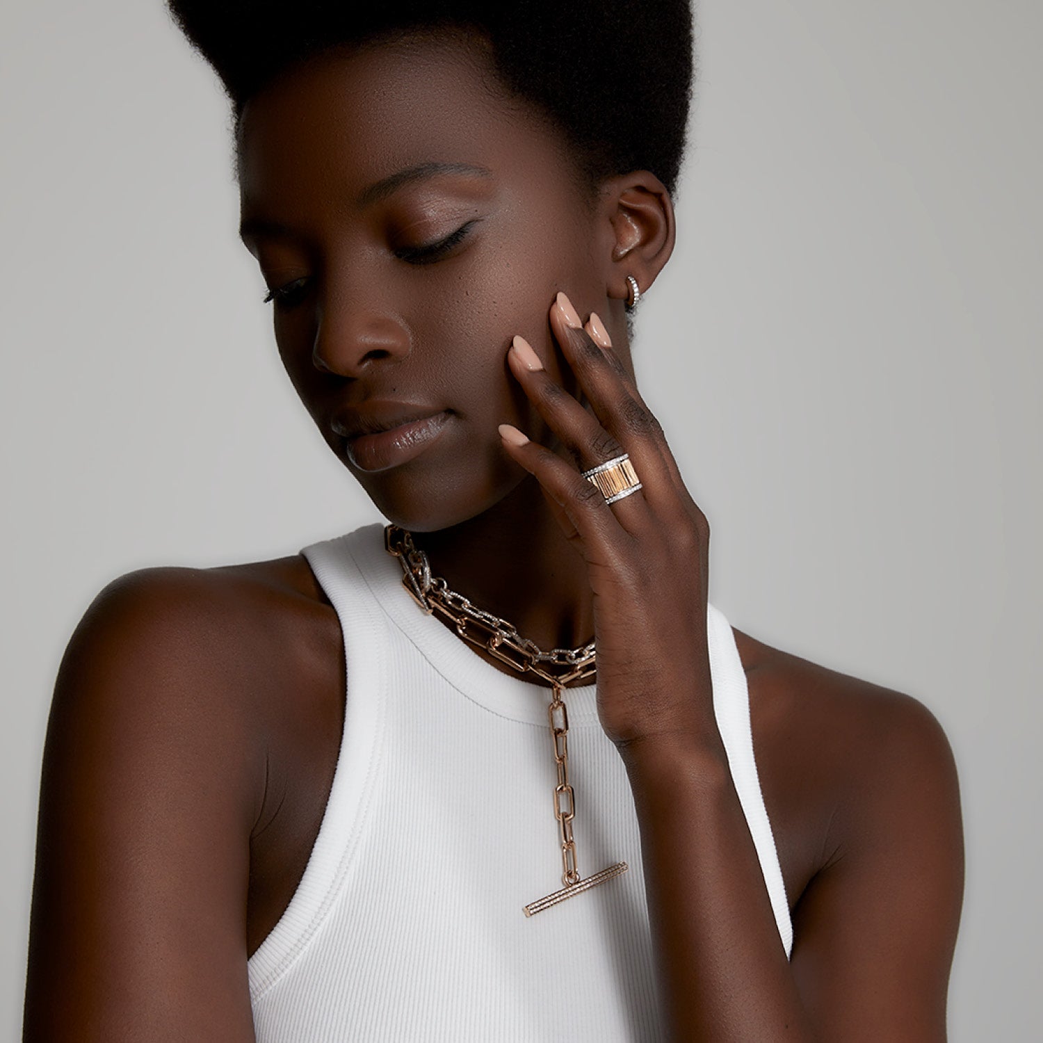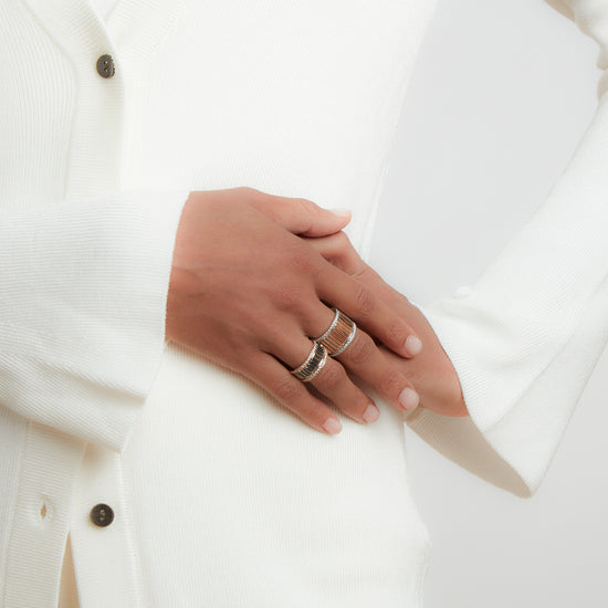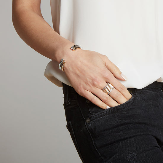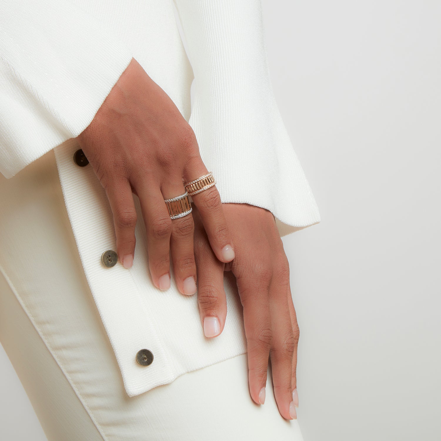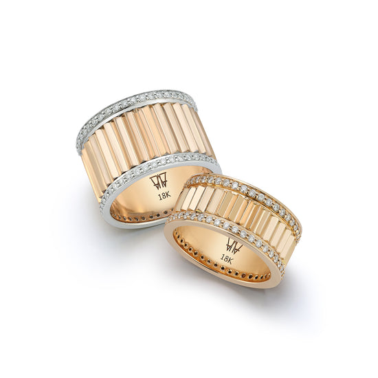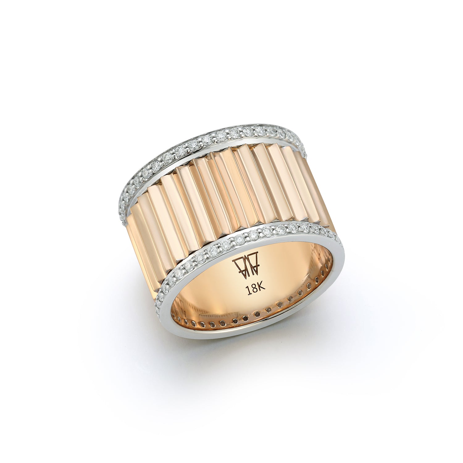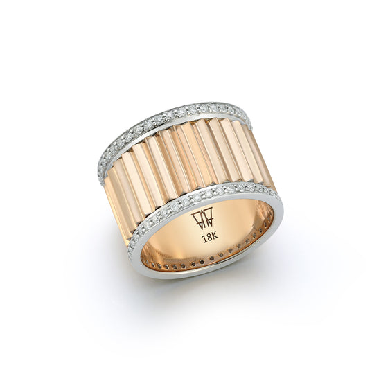 CLIVE 18K TWO TONE DIAMOND FLUTED BAND RING