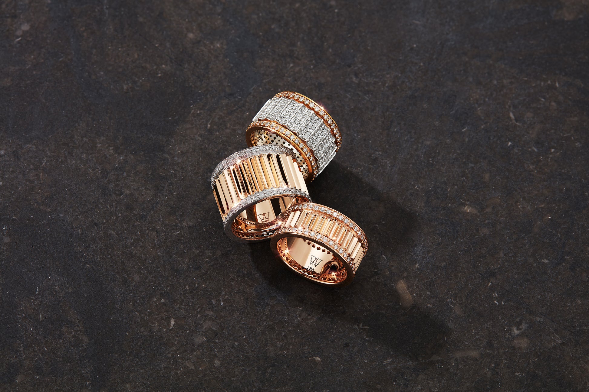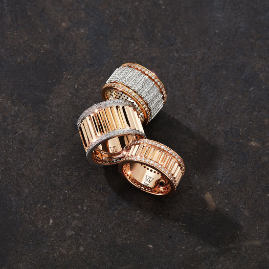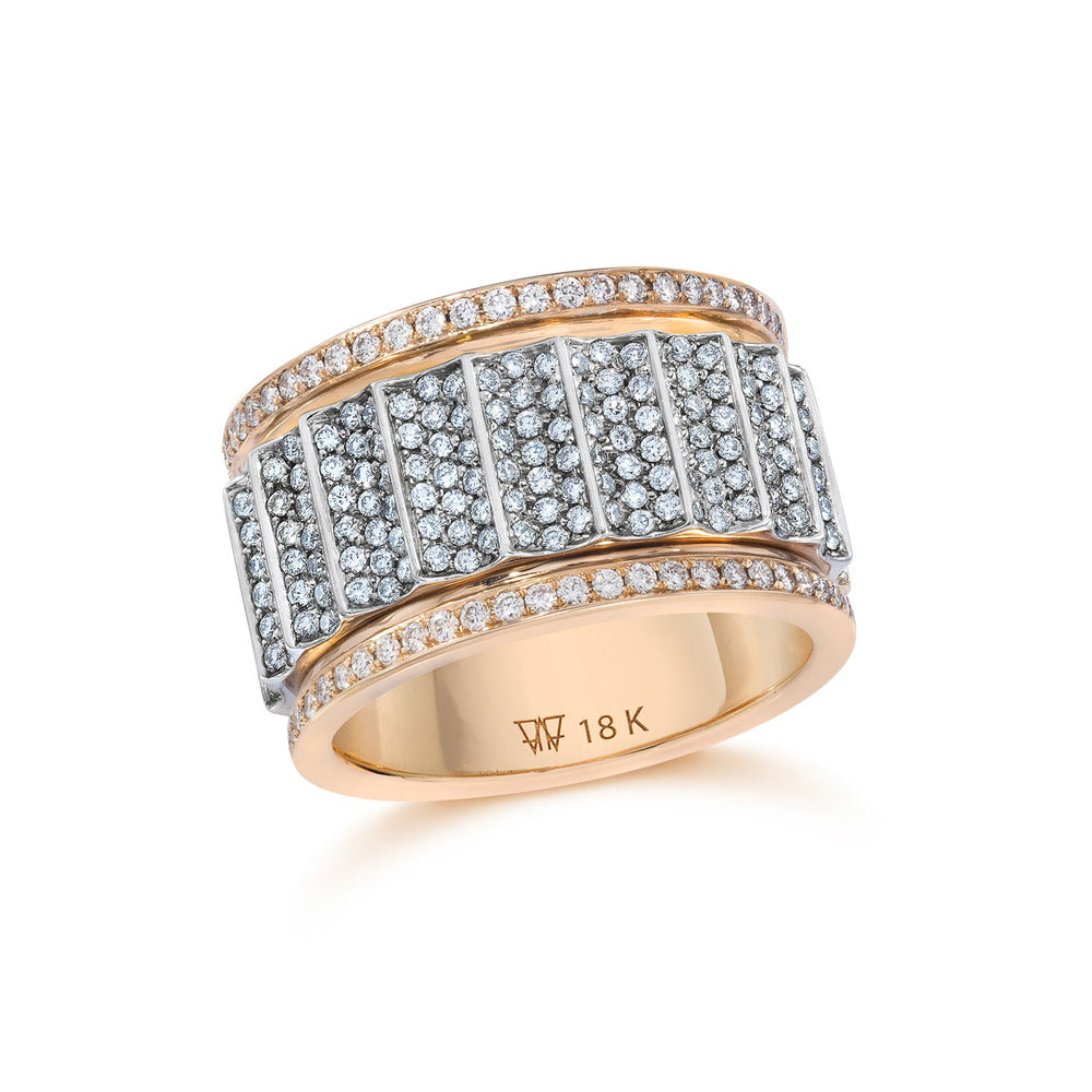 CLIVE TWO TONE ALL DIAMOND 12MM WIDE FLUTED BAND RING