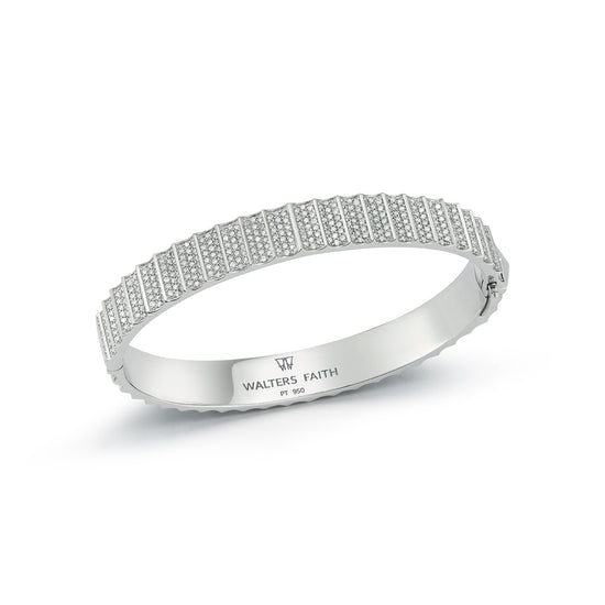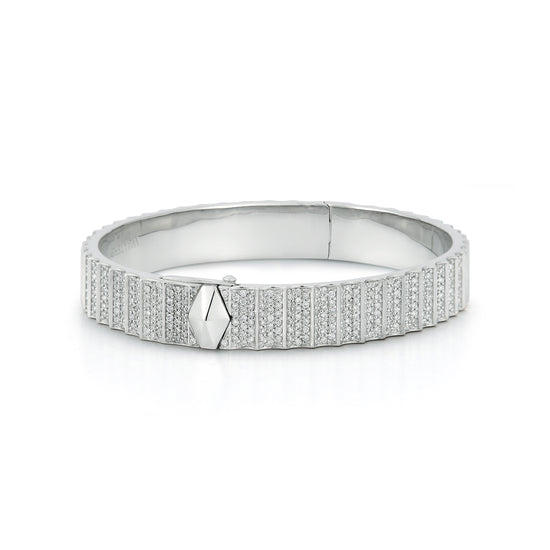 CLIVE PLATINUM ALL DIAMOND FLUTED BANGLE BRACELET