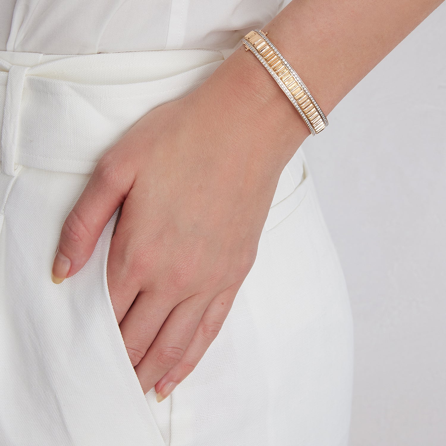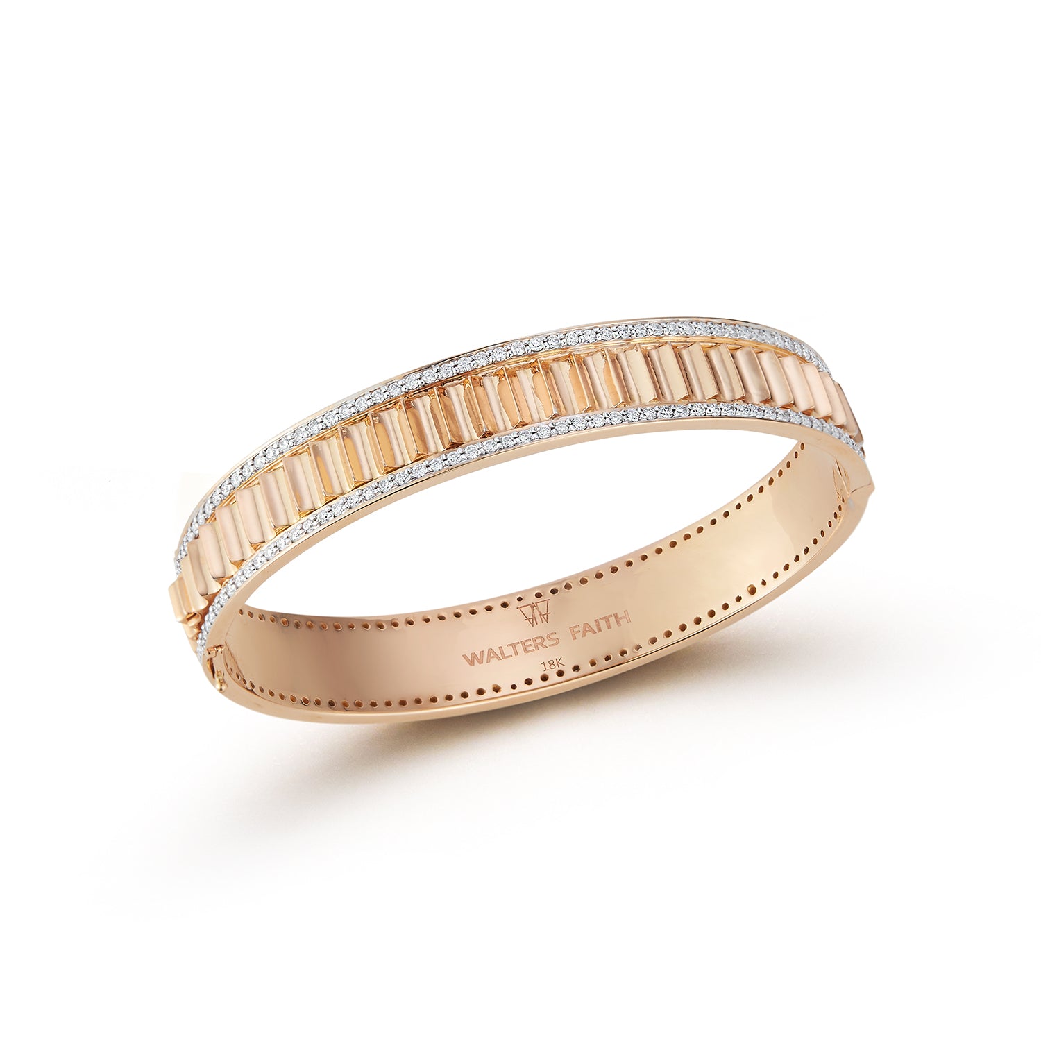 CLIVE 18K GOLD AND DIAMOND EDGE FLUTED CUFF BANGLE