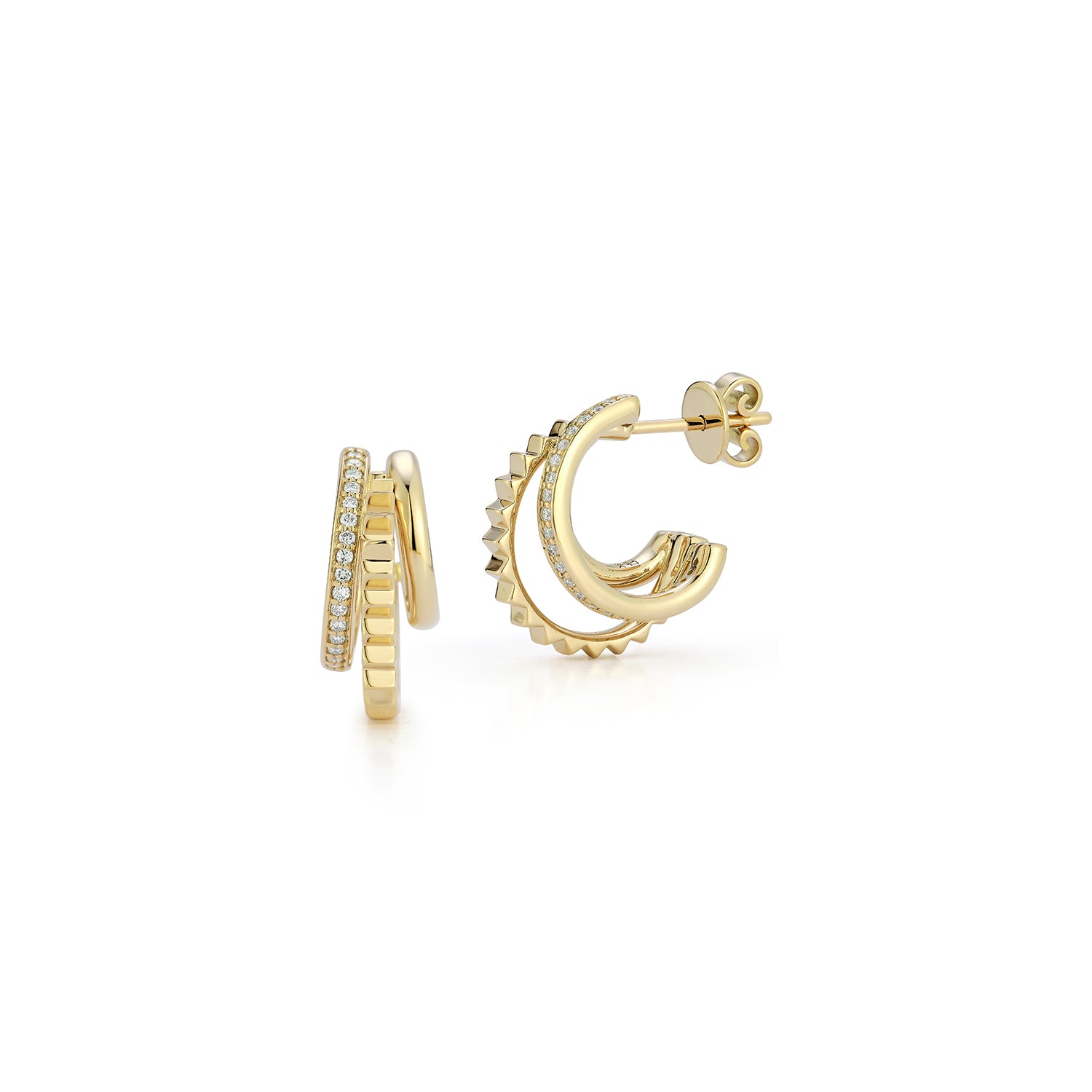 CLIVE 18K AND DIAMOND TRIPLE HOOP HUGGIE EARRINGS