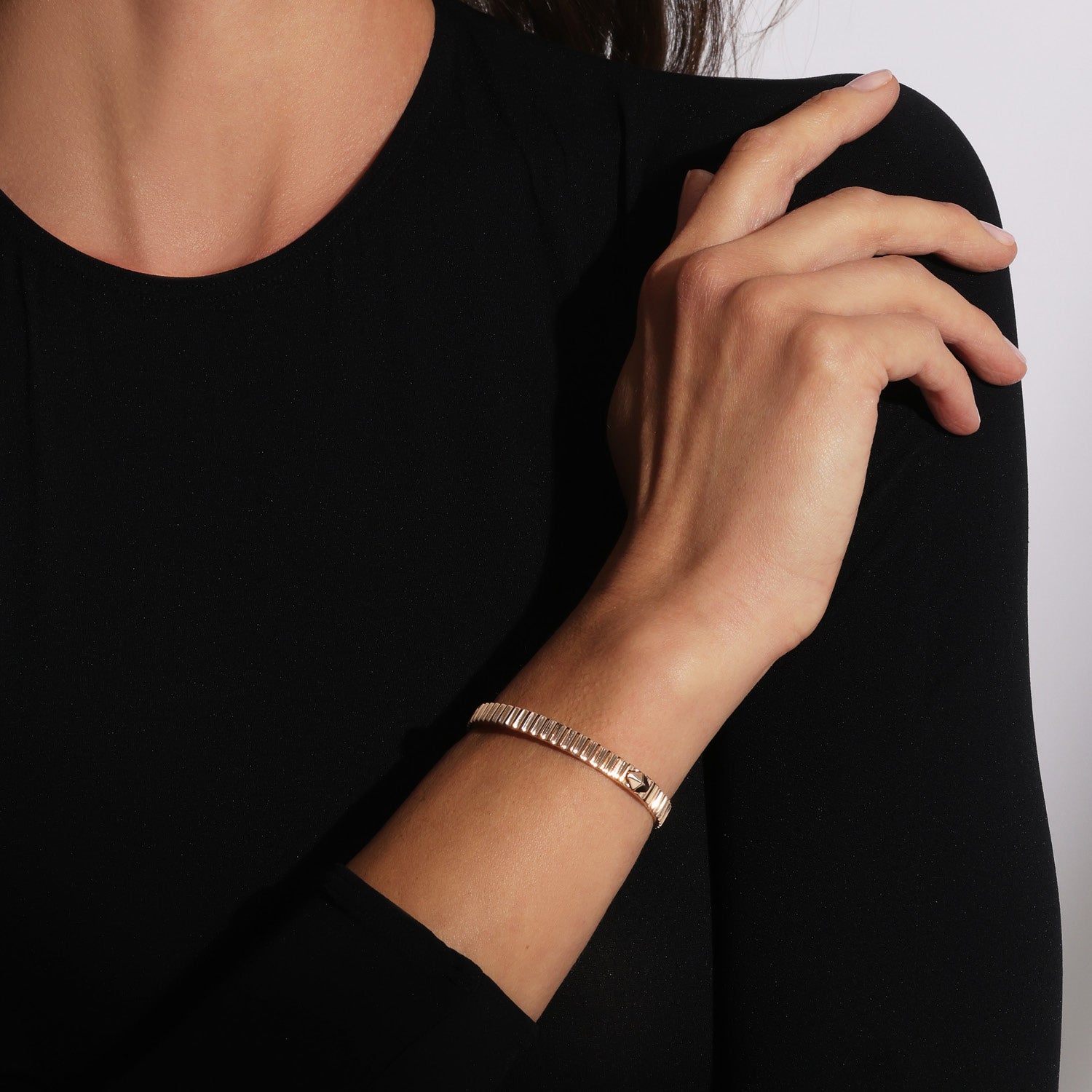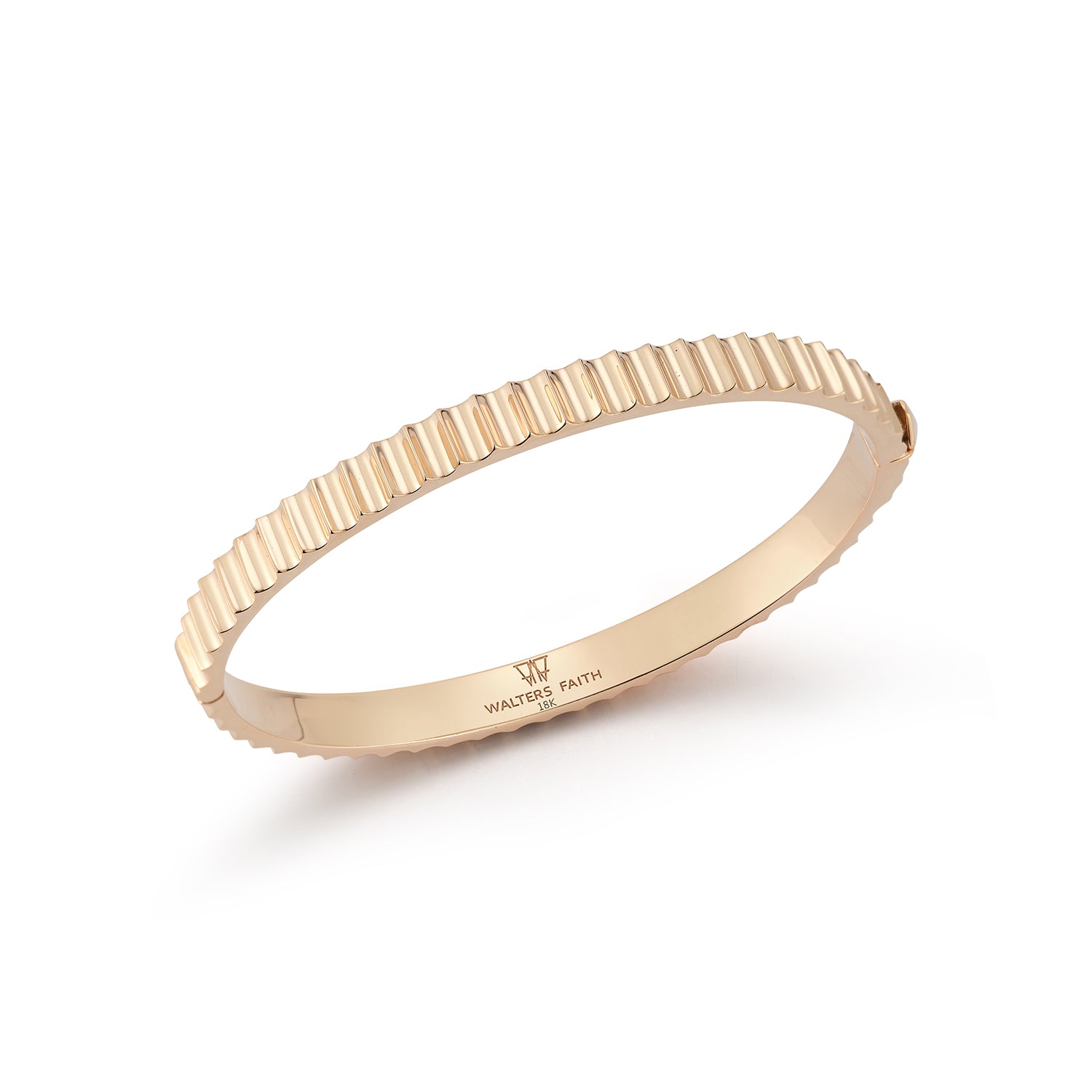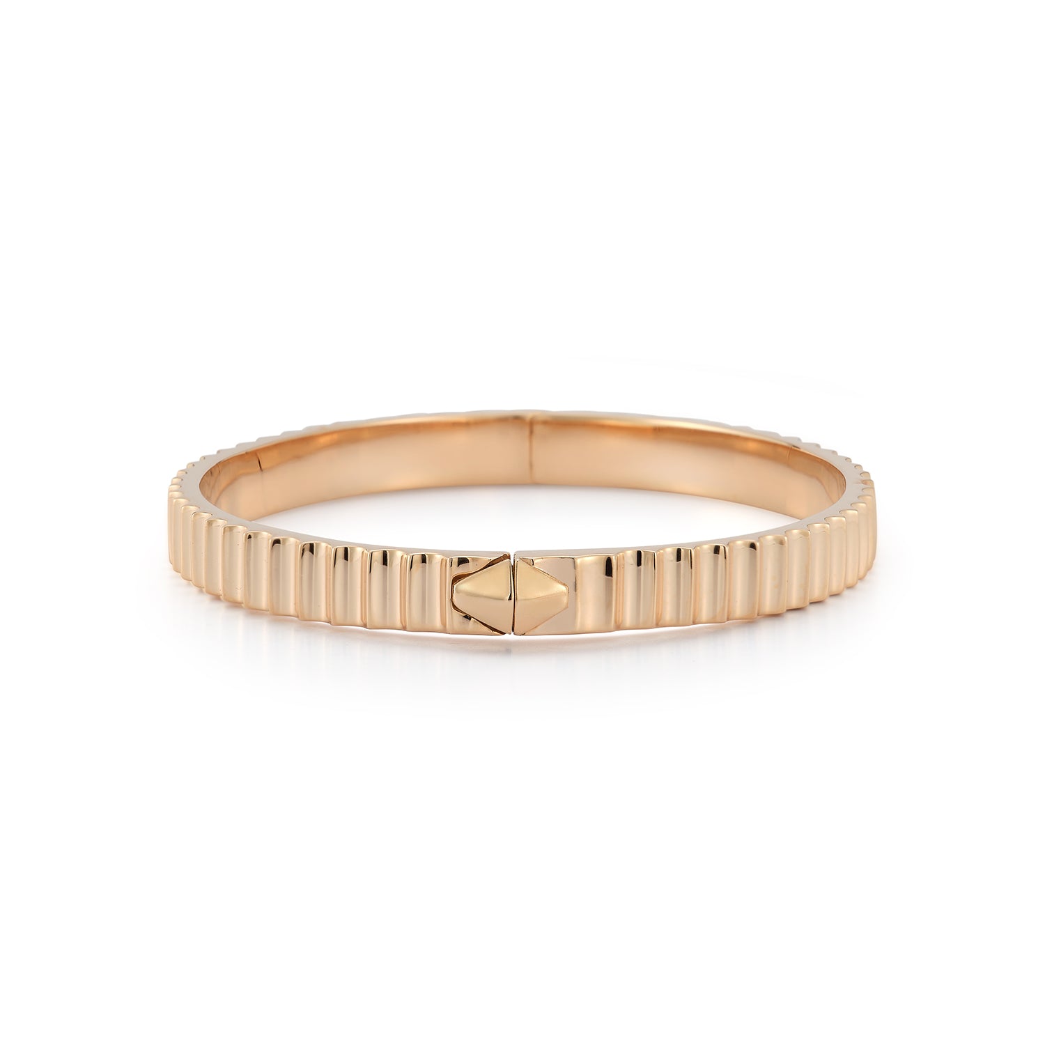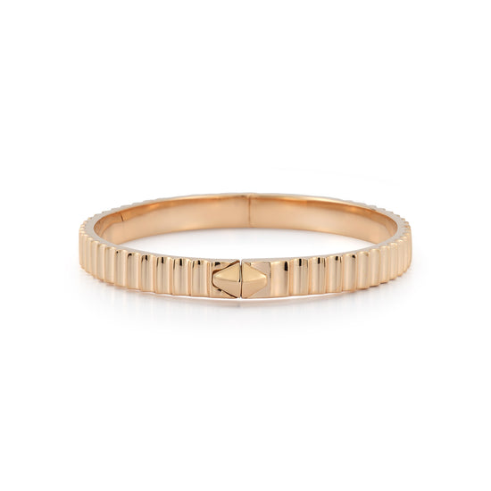 CLIVE 18K GOLD FLUTED BANGLE BRACELET WITH ORIGAMI PUSH CLOSURE