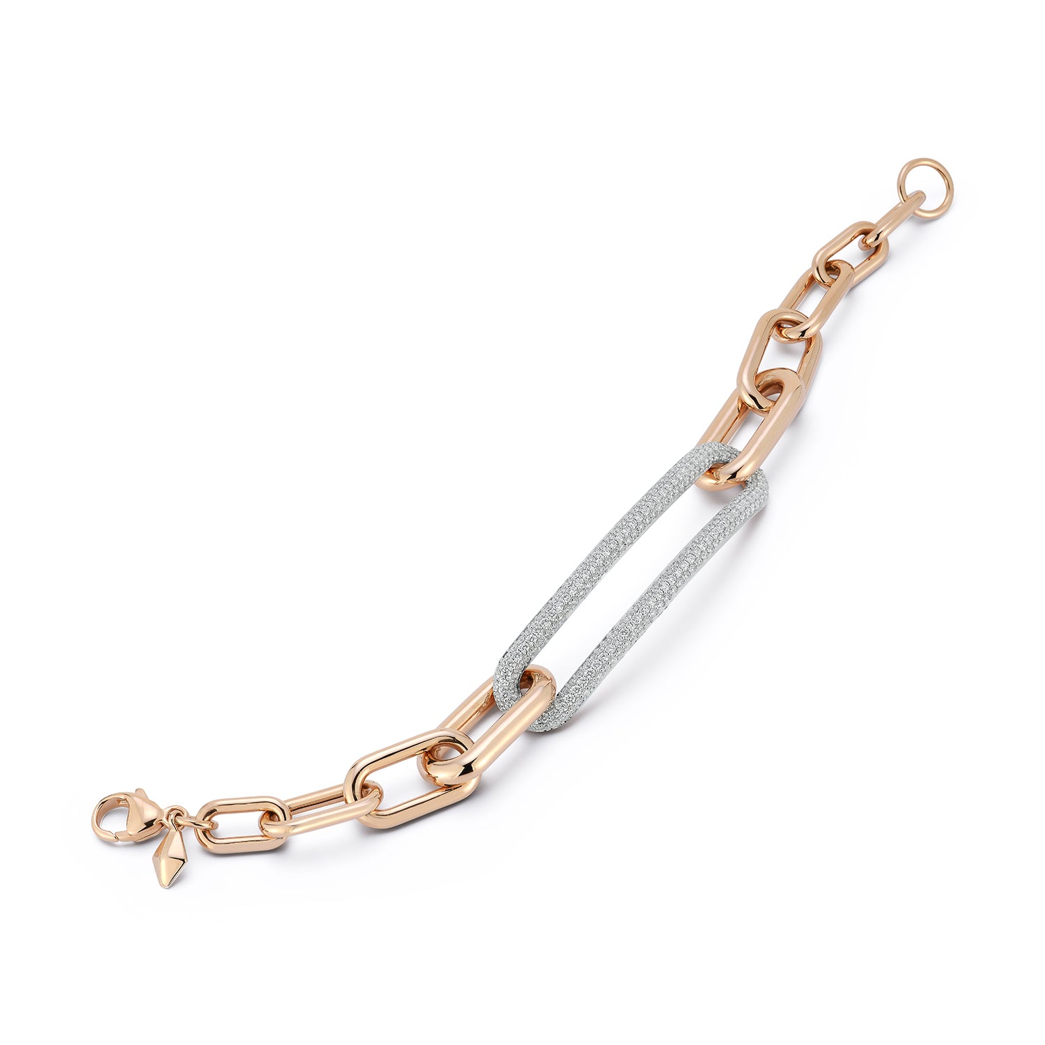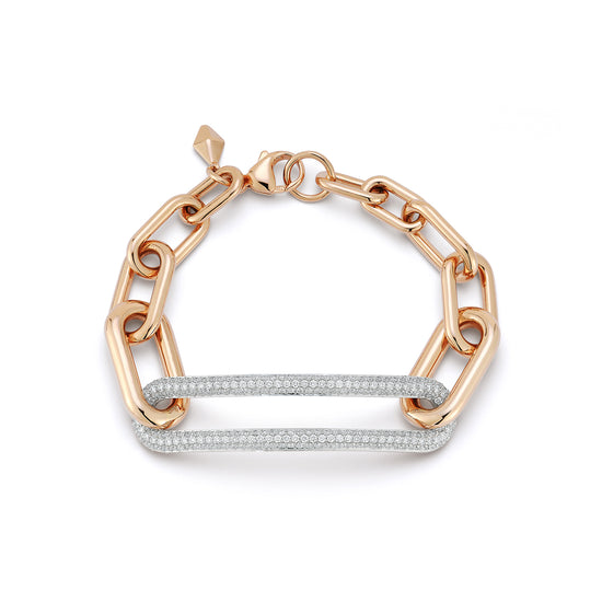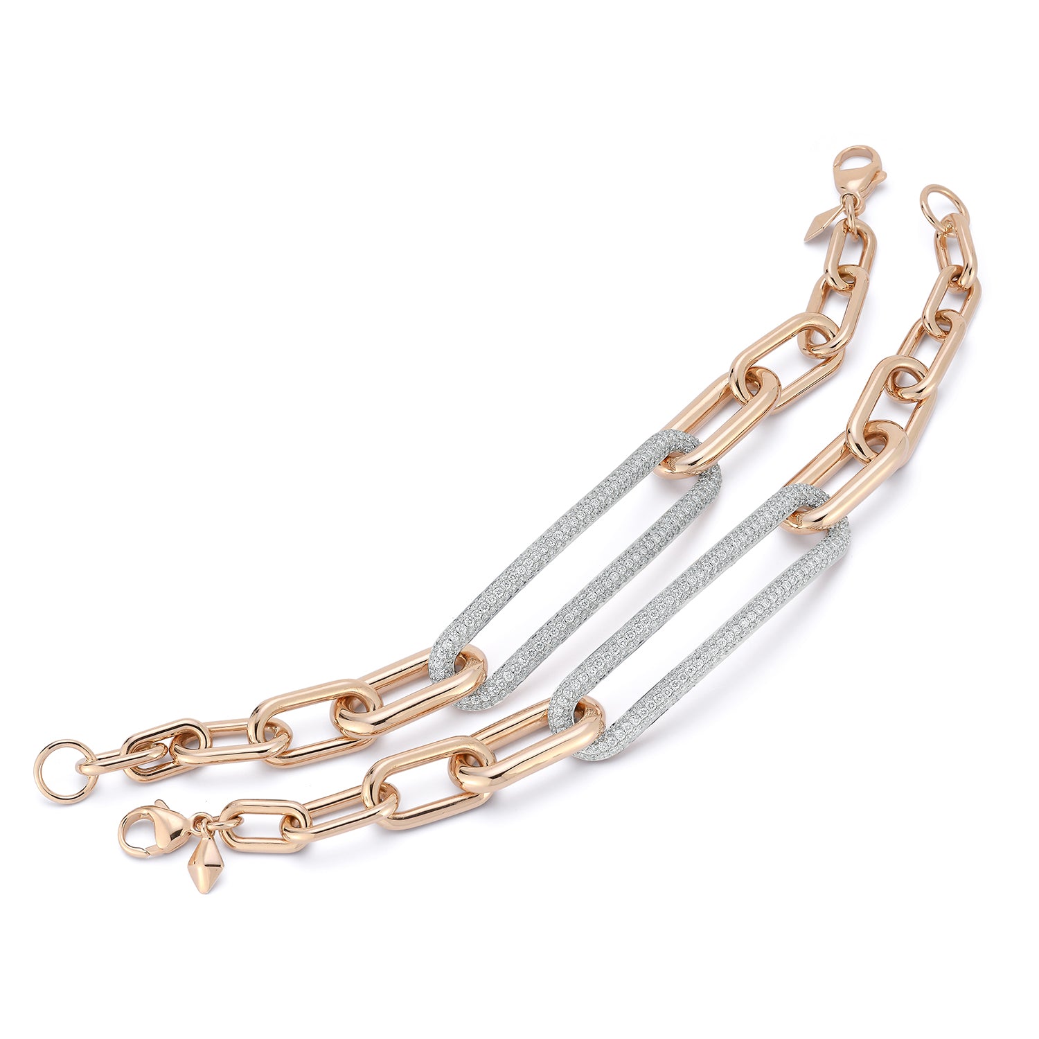 MORRELL 18K GOLD GRADUATING CHAIN LINK BRACELET WITH ELONGATED DIAMOND LINK