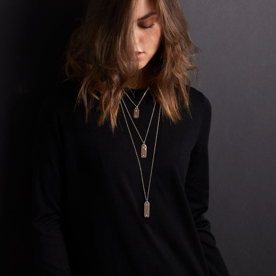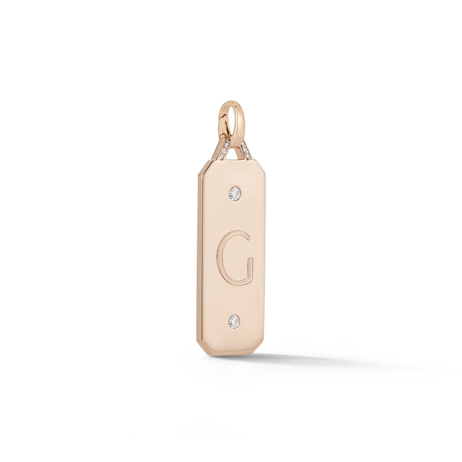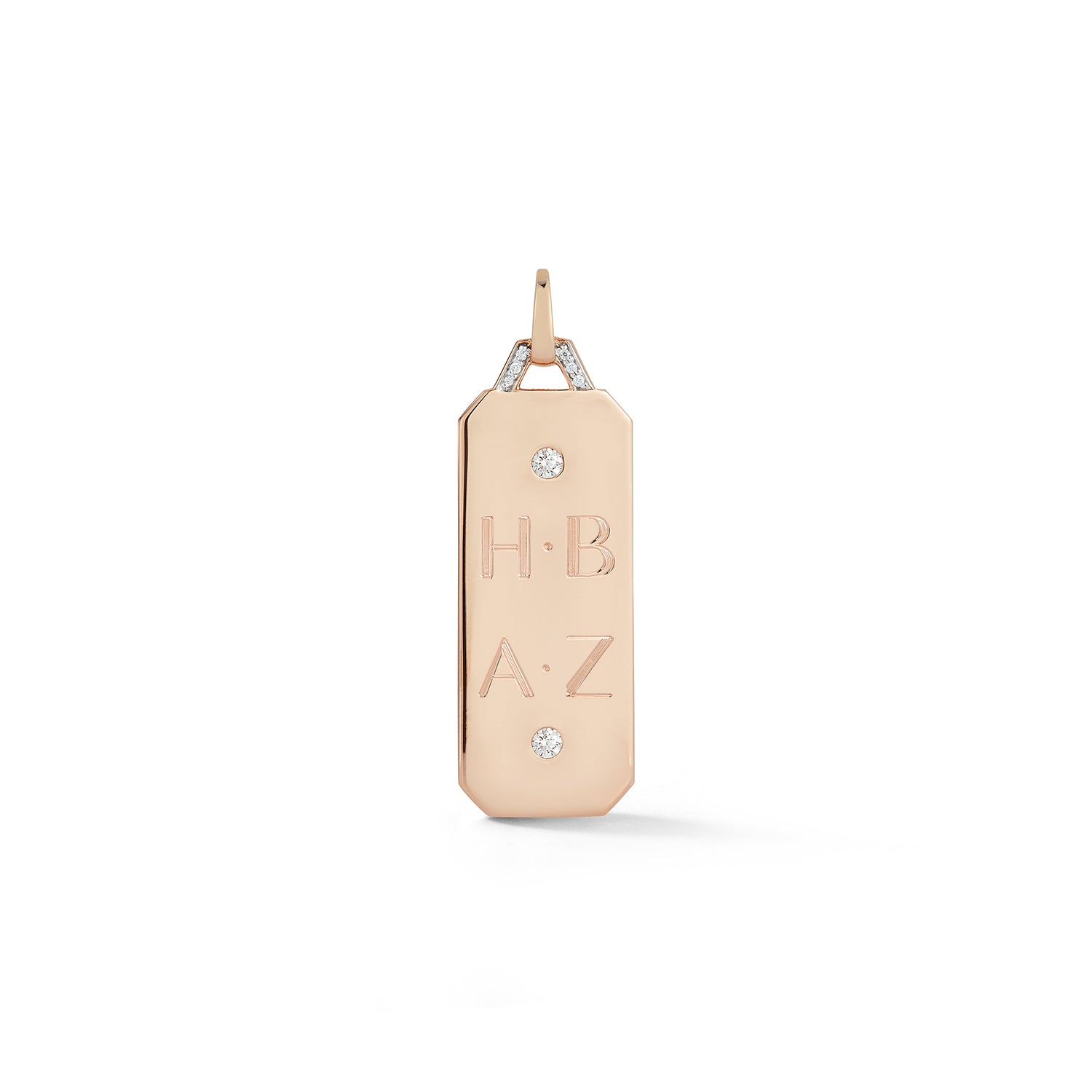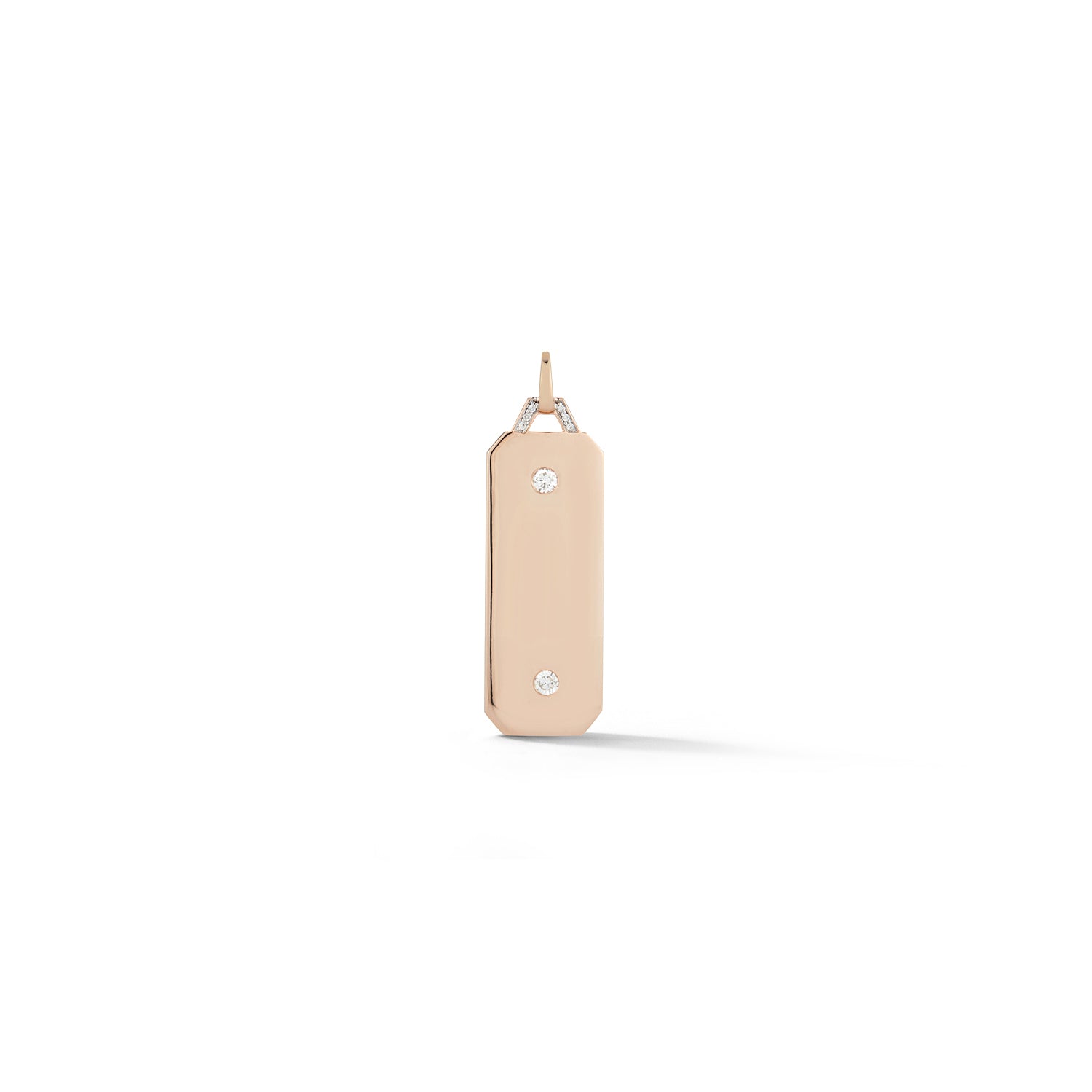 DORA 18K GOLD AND DIAMOND MEDIUM 1.25" L RECTANGULAR TABLET CHARM WITH 2 RBC STONES