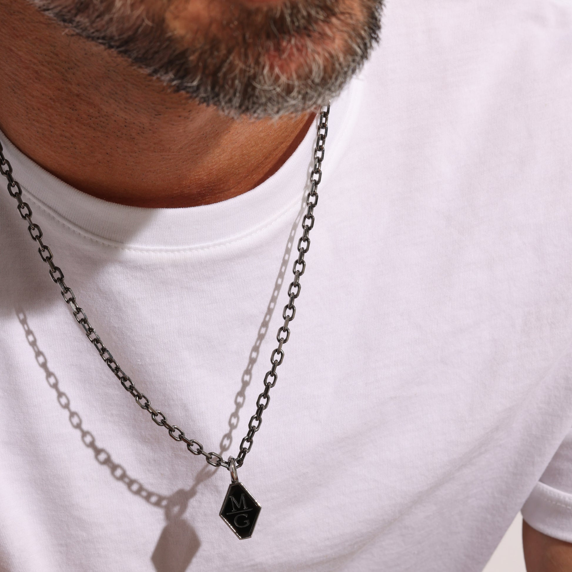 DORA STERLING SILVER, BLACK RHODIUM AND BLACK SPINEL ORIGAMI PENDANT