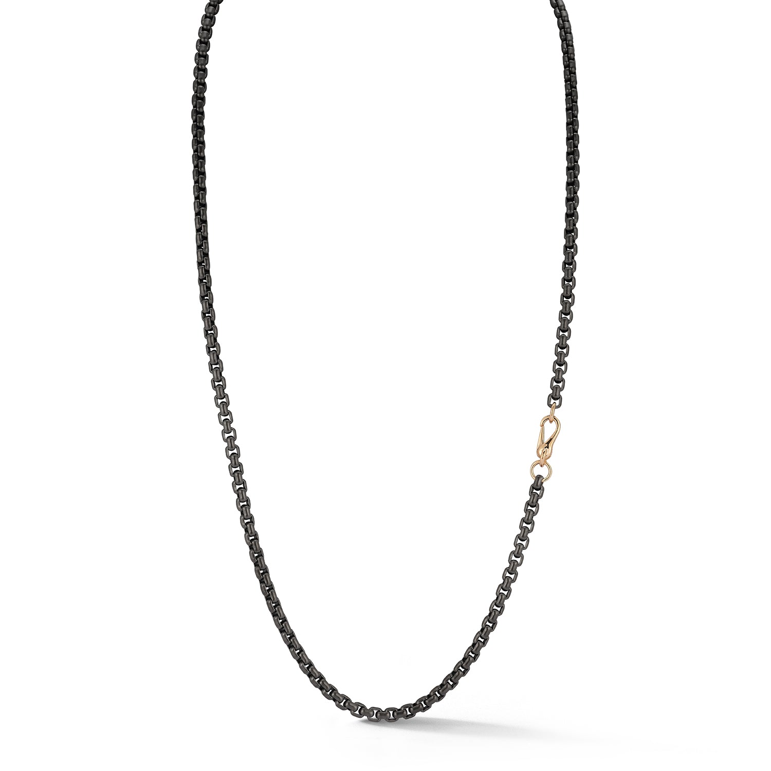 GARNETT STERLING SILVER CHAIN LINK NECKLACE WITH 18K ROSE GOLD CLASP