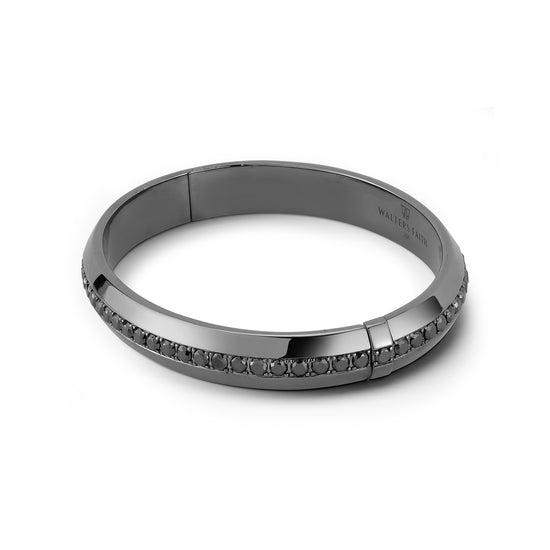 GRANT 18K BLACK GOLD AND BLACK DIAMOND ANGLED BANGLE BRACELET