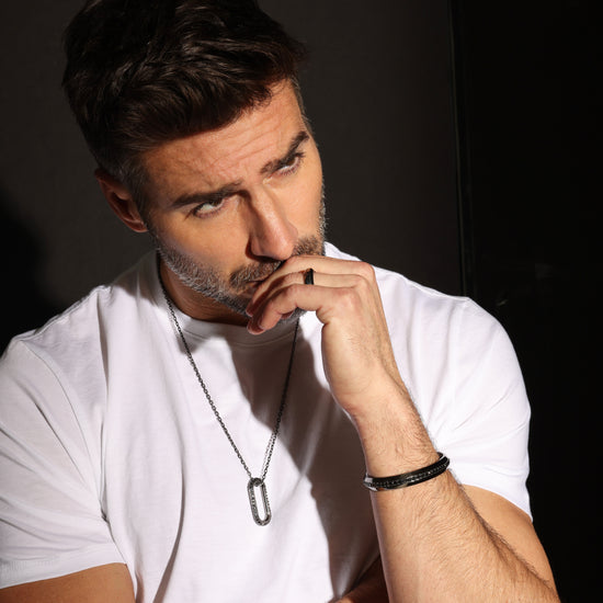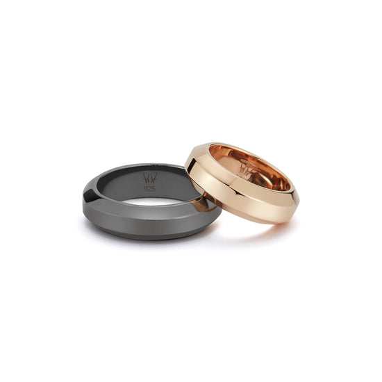 GRANT STERLING SILVER AND BLACK RHODIUM ANGLED BAND RING