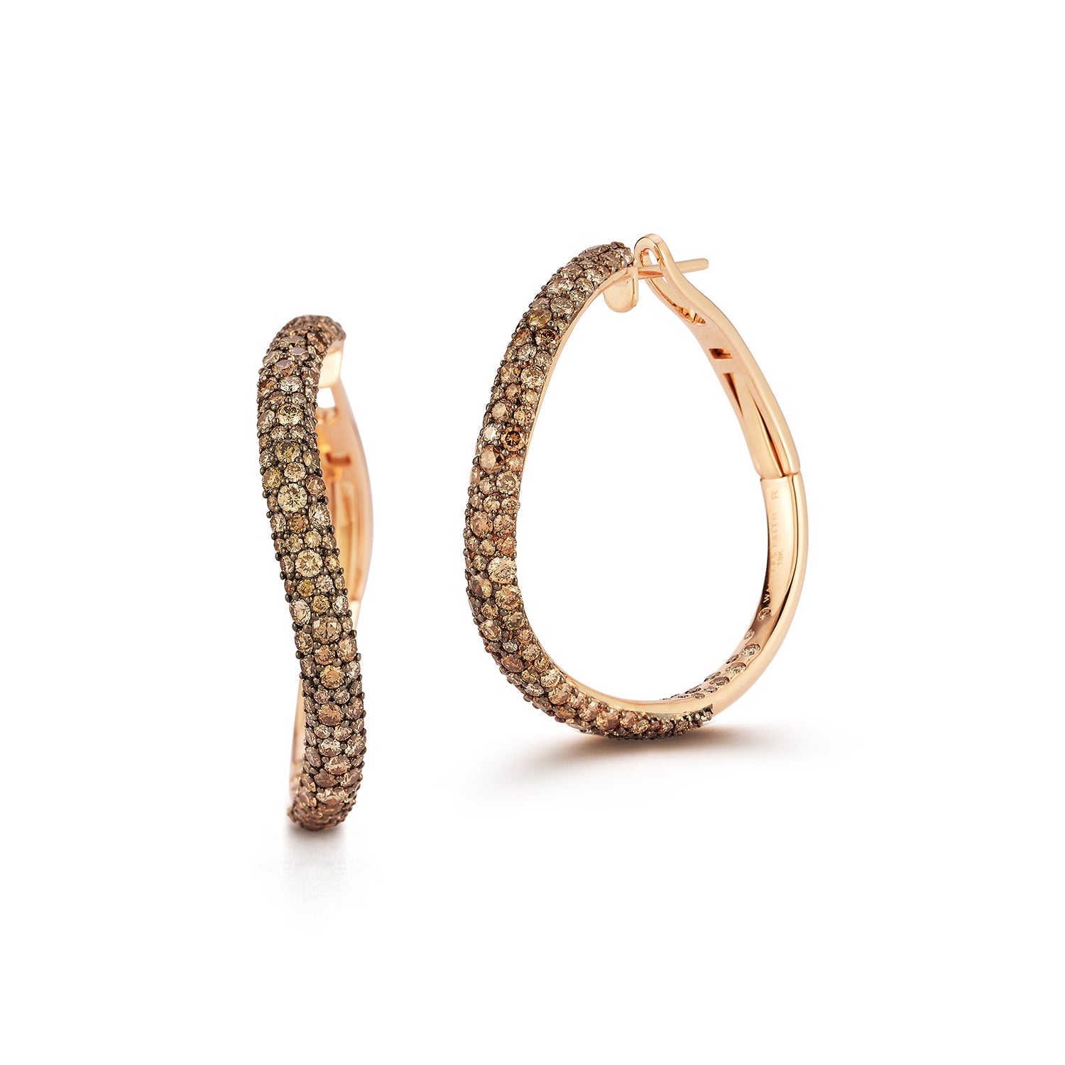 JULIAN 18K GOLD AND CHAMPAGNE DIAMOND CURVED HOOP EARRINGS