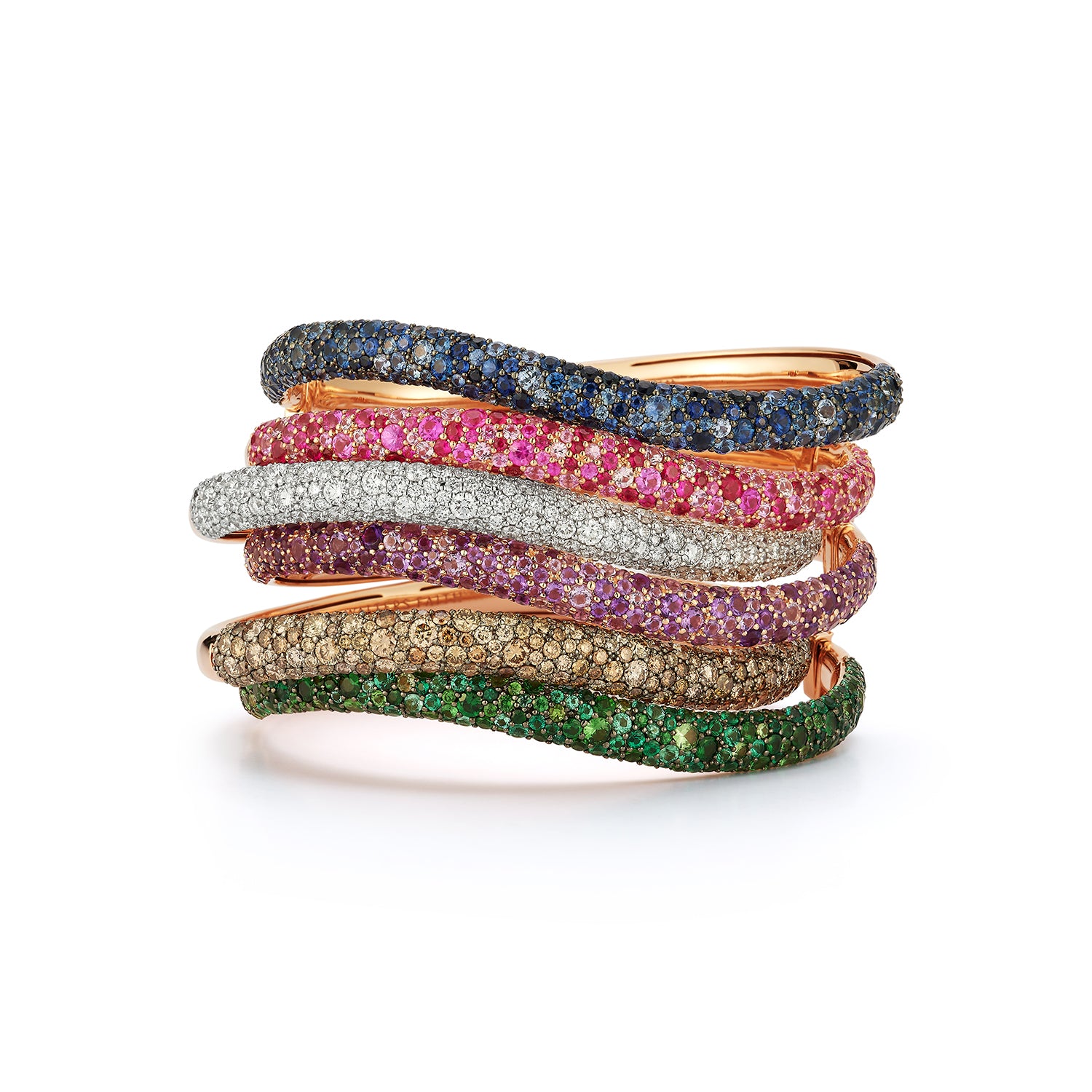 JULIAN 18K GOLD AND PINK SAPPHIRE WAVE BRACELET