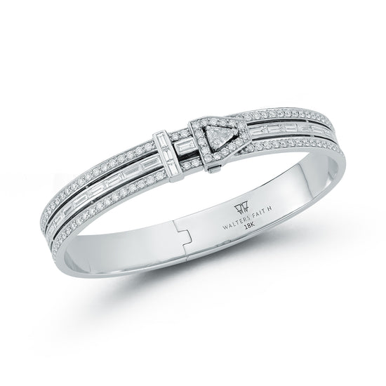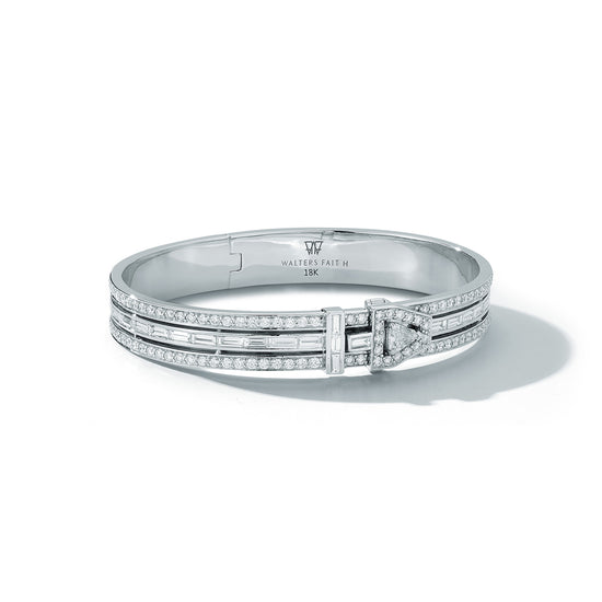 KEYNES 18K WHITE GOLD AND DIAMOND BUCKLE BANGLE BRACELET
