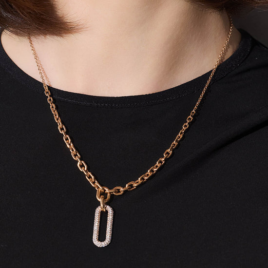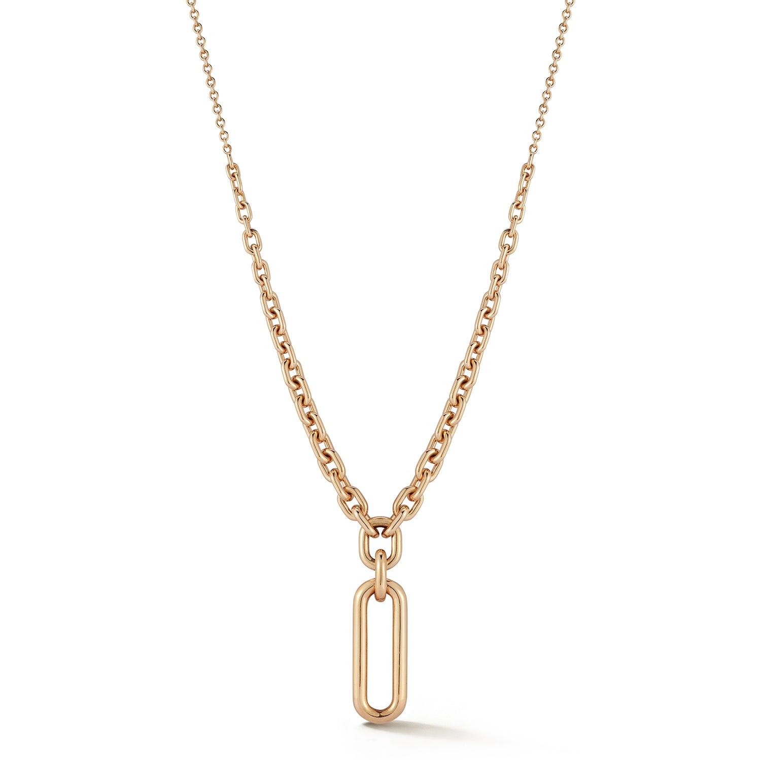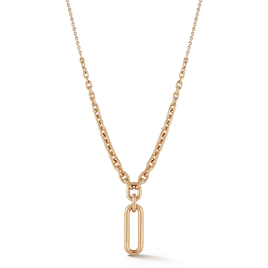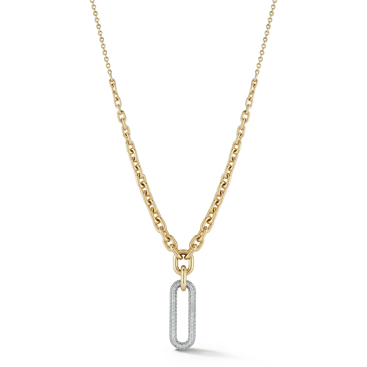 MORRELL 18K GOLD GRADUATED LINK NECKLACE WITH HANGING ELONGATED DIAMOND LINK