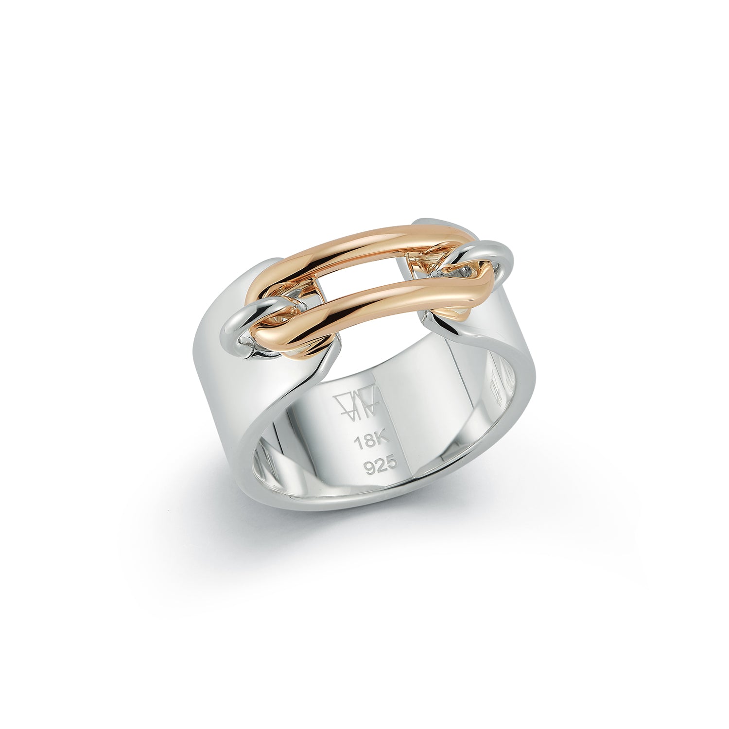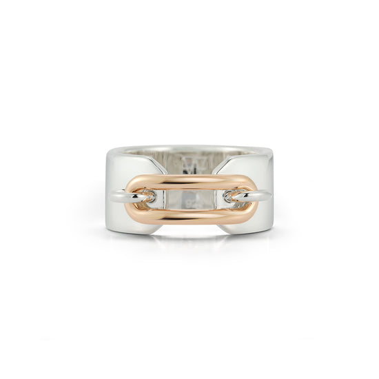 MORRELL 18K GOLD AND STERLING SILVER ELONGATED OVAL LINK CUFF RING