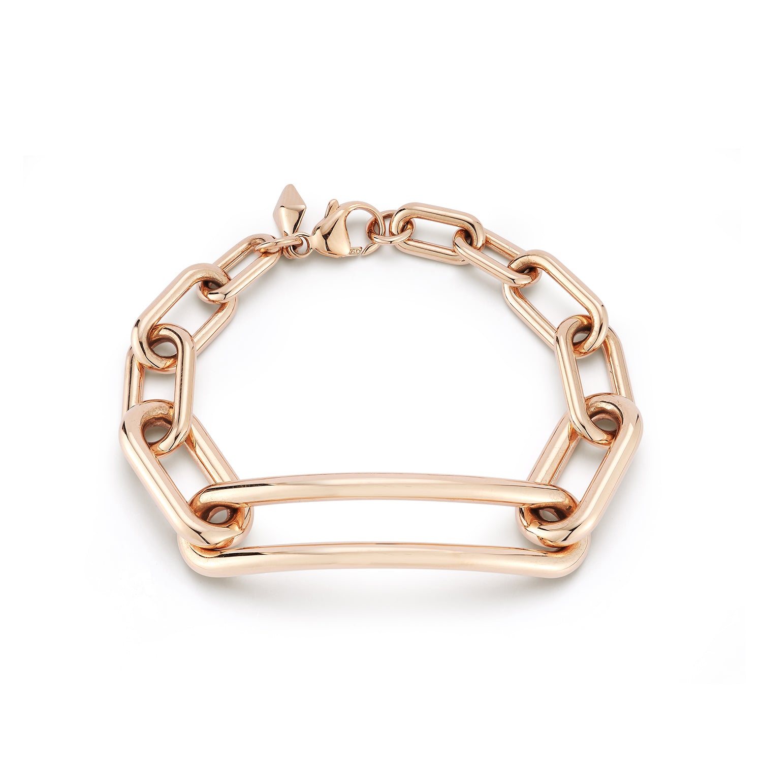 MORRELL 18K GOLD GRADUATING CHAIN LINK BRACELET WITH ELONGATED LINK