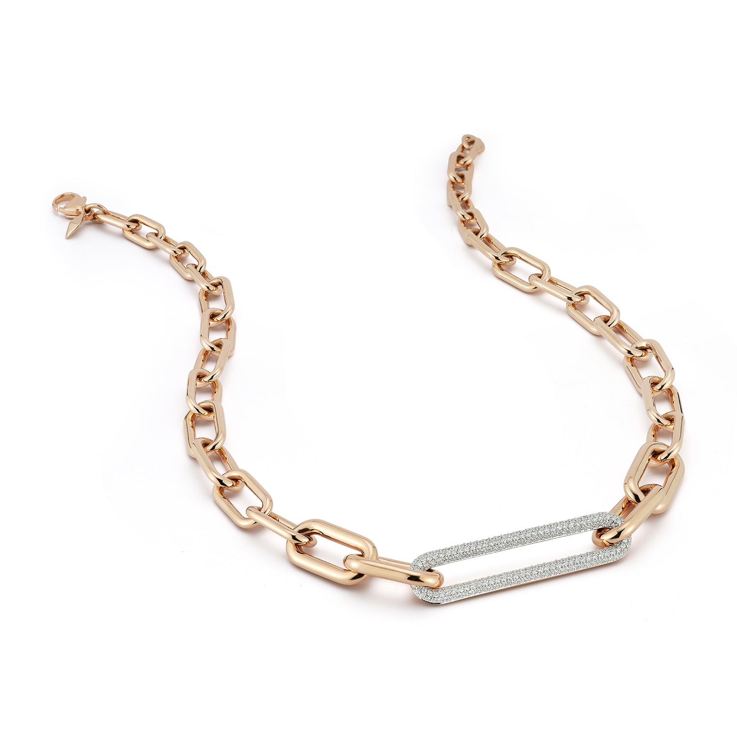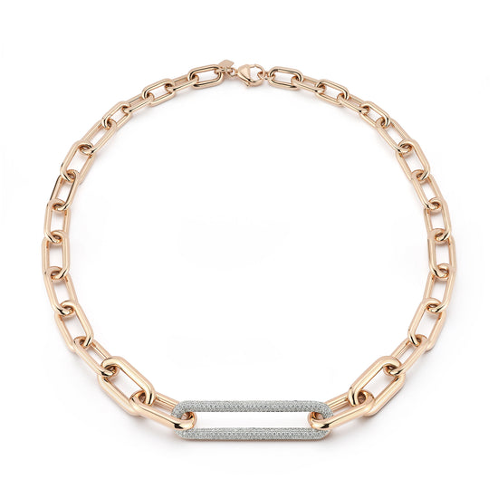 MORRELL 18K GOLD GRADUATING CHAIN NECKLACE WITH ELONGATED DIAMOND LINK