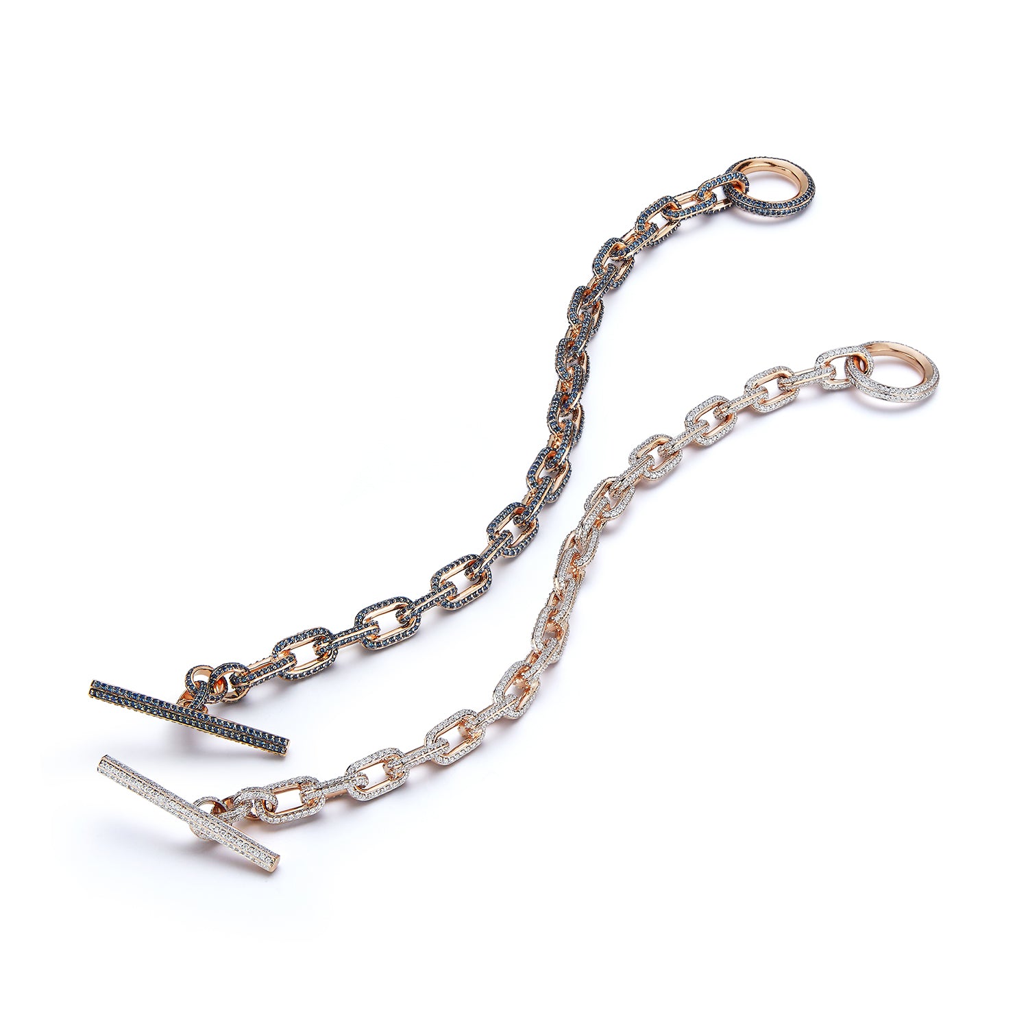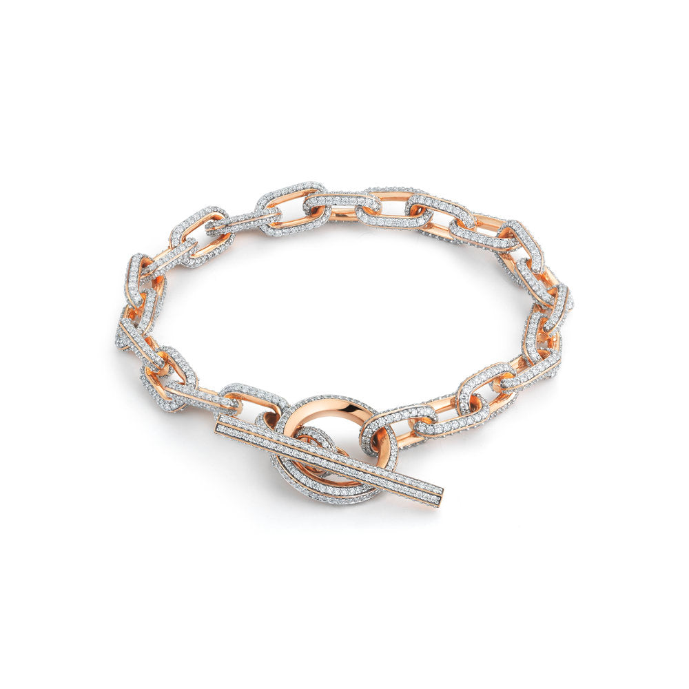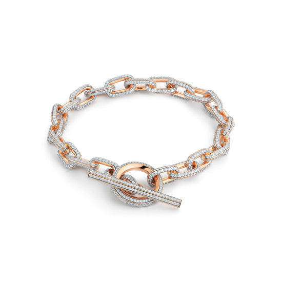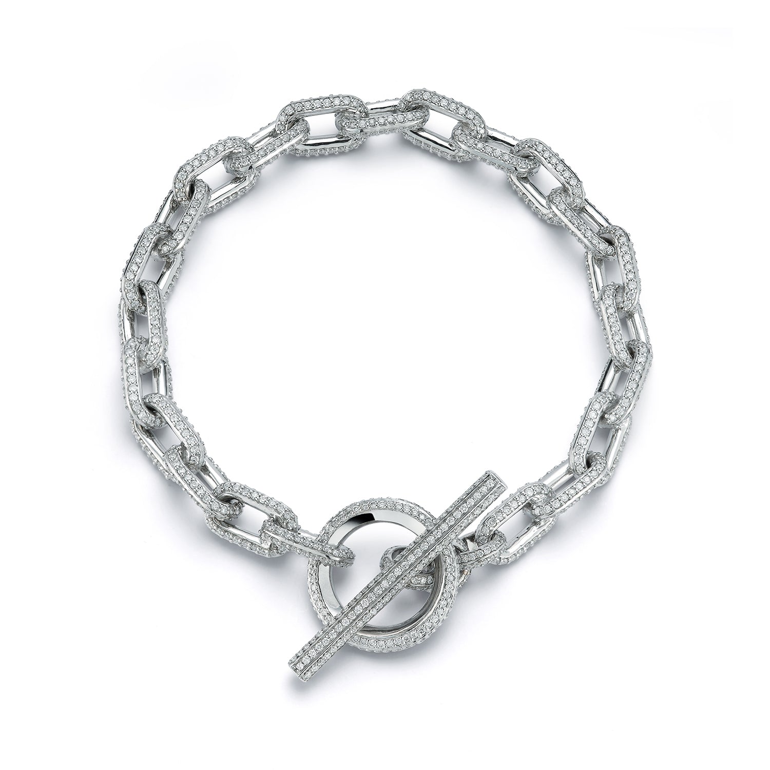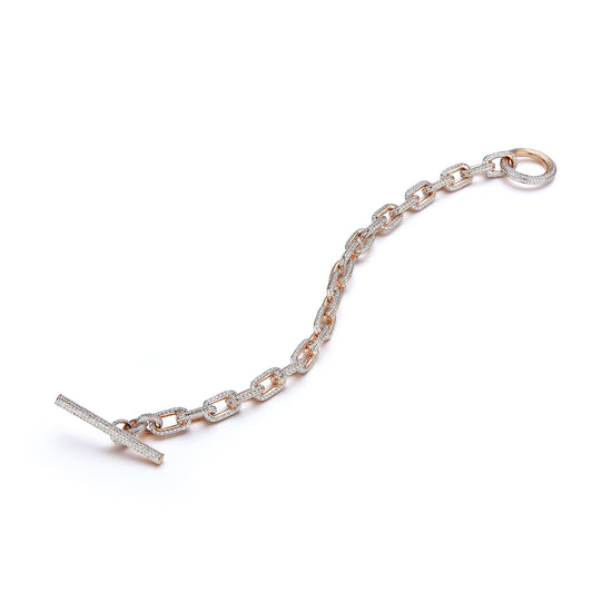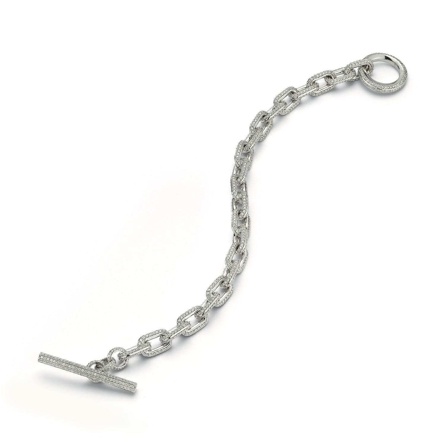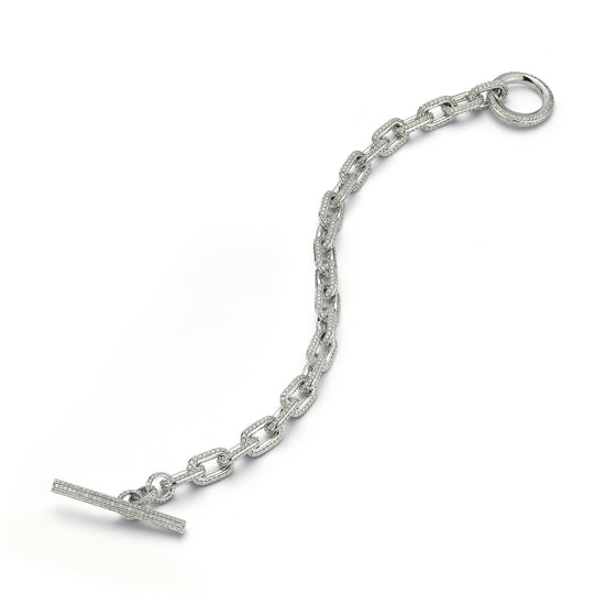 SAXON 18K ALL DIAMOND CHAIN LINK TOGGLE BRACELET