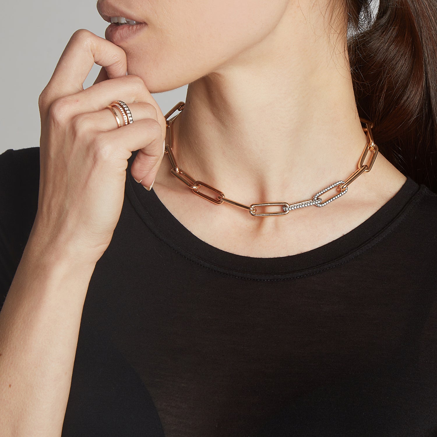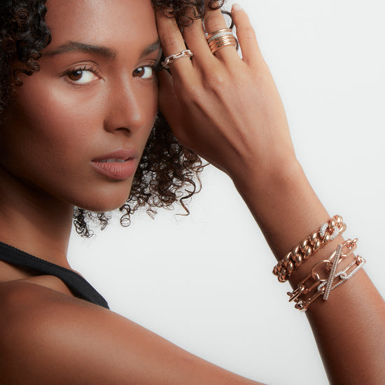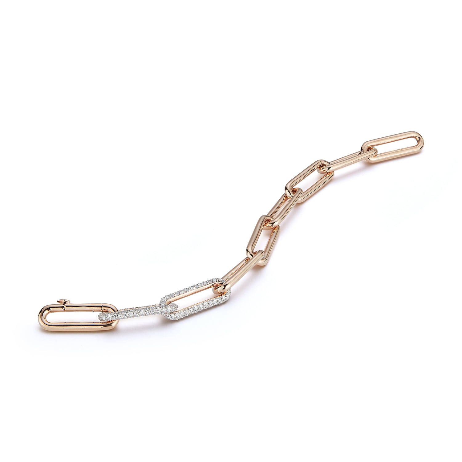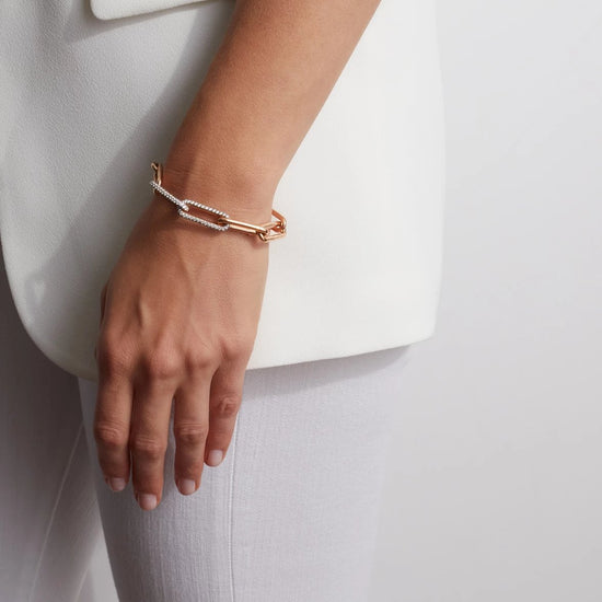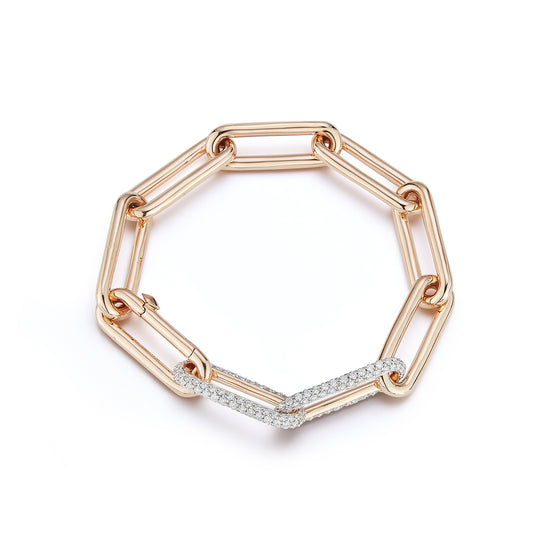SAXON 18K ELONGATED CHAIN LINK BRACELET WITH DOUBLE DIAMOND LINKS