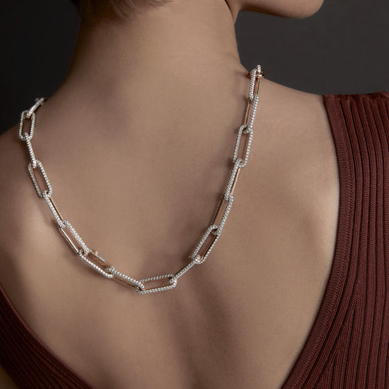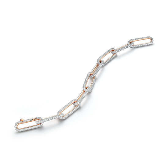 SAXON 18K GOLD ALL DIAMOND ELONGATED CHAIN LINK BRACELET