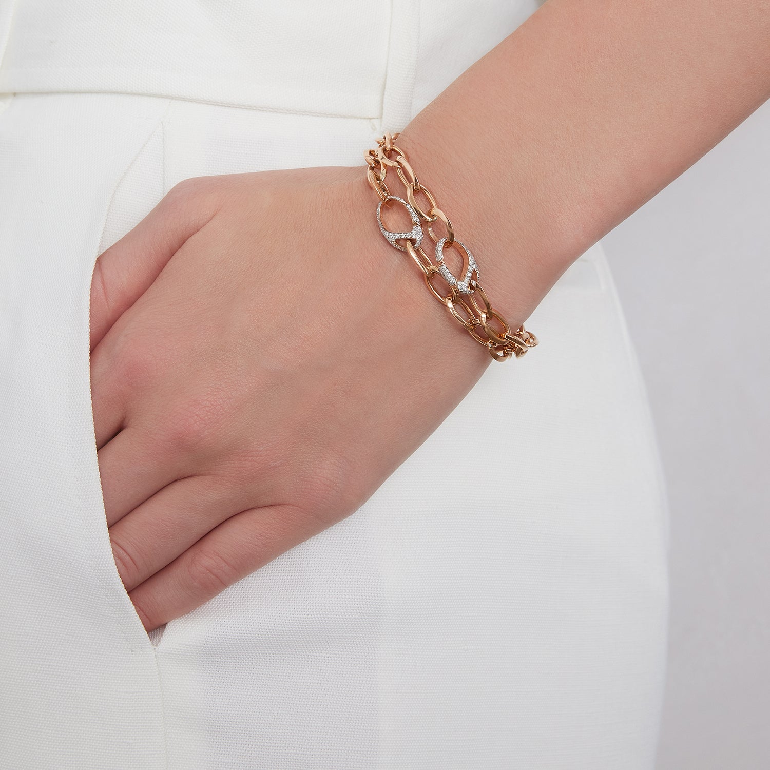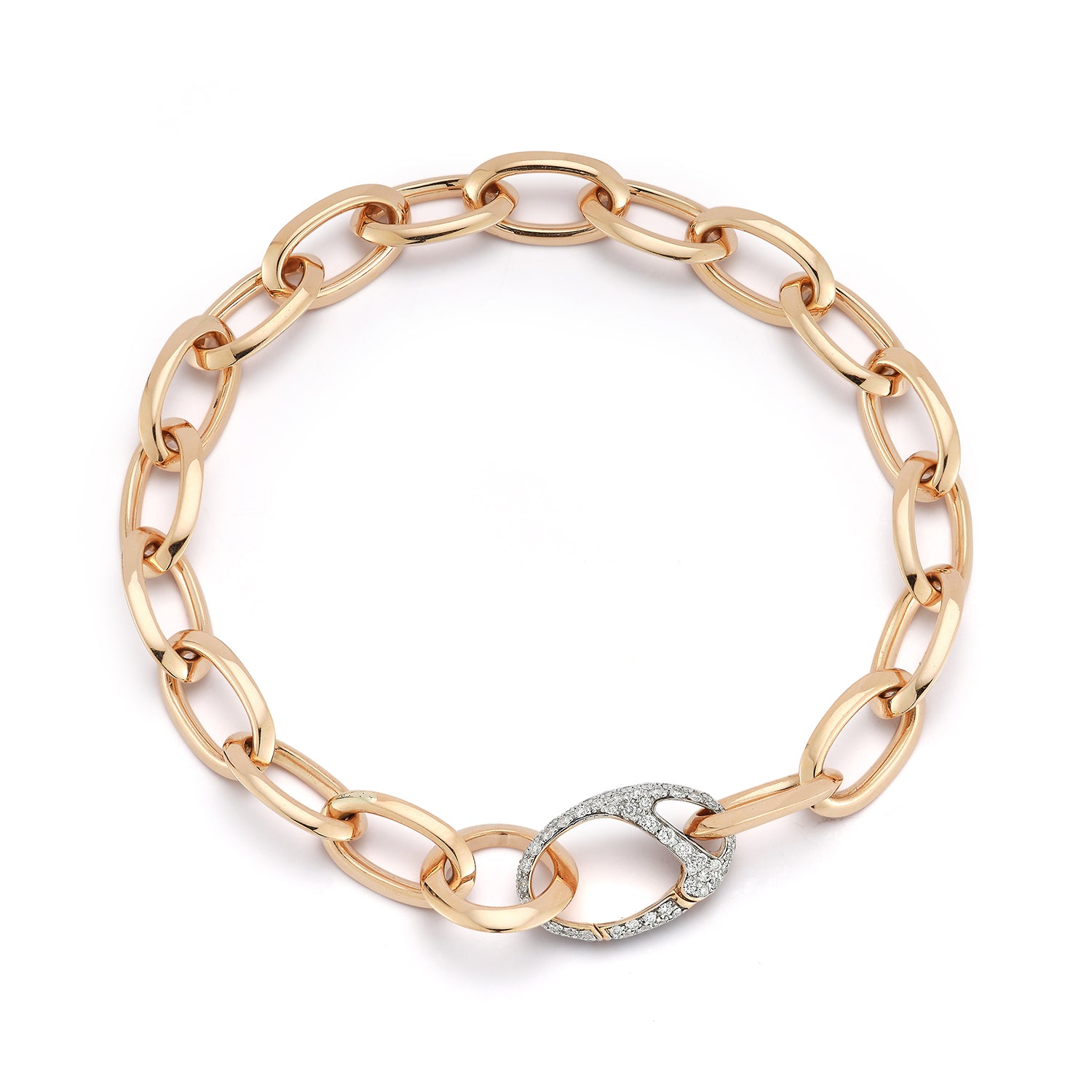 GARNETT 18K GOLD CHAIN LINK BRACELET WITH DIAMOND OVAL CLASP