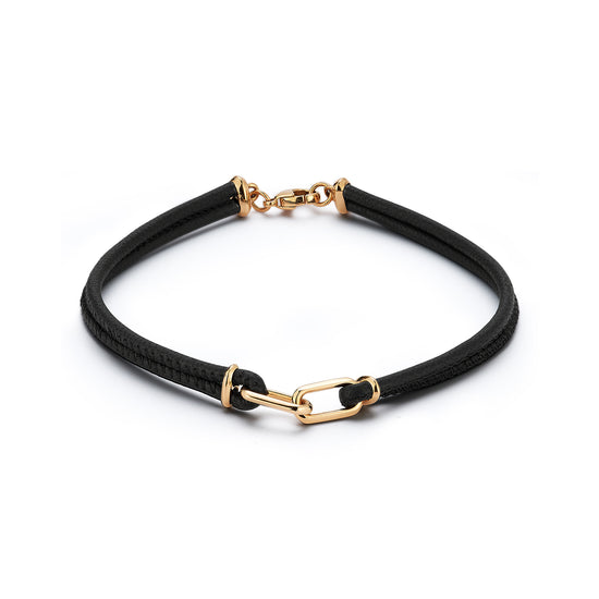 Saxon 18K Rose Gold Double Link Napa Leather Bracelet