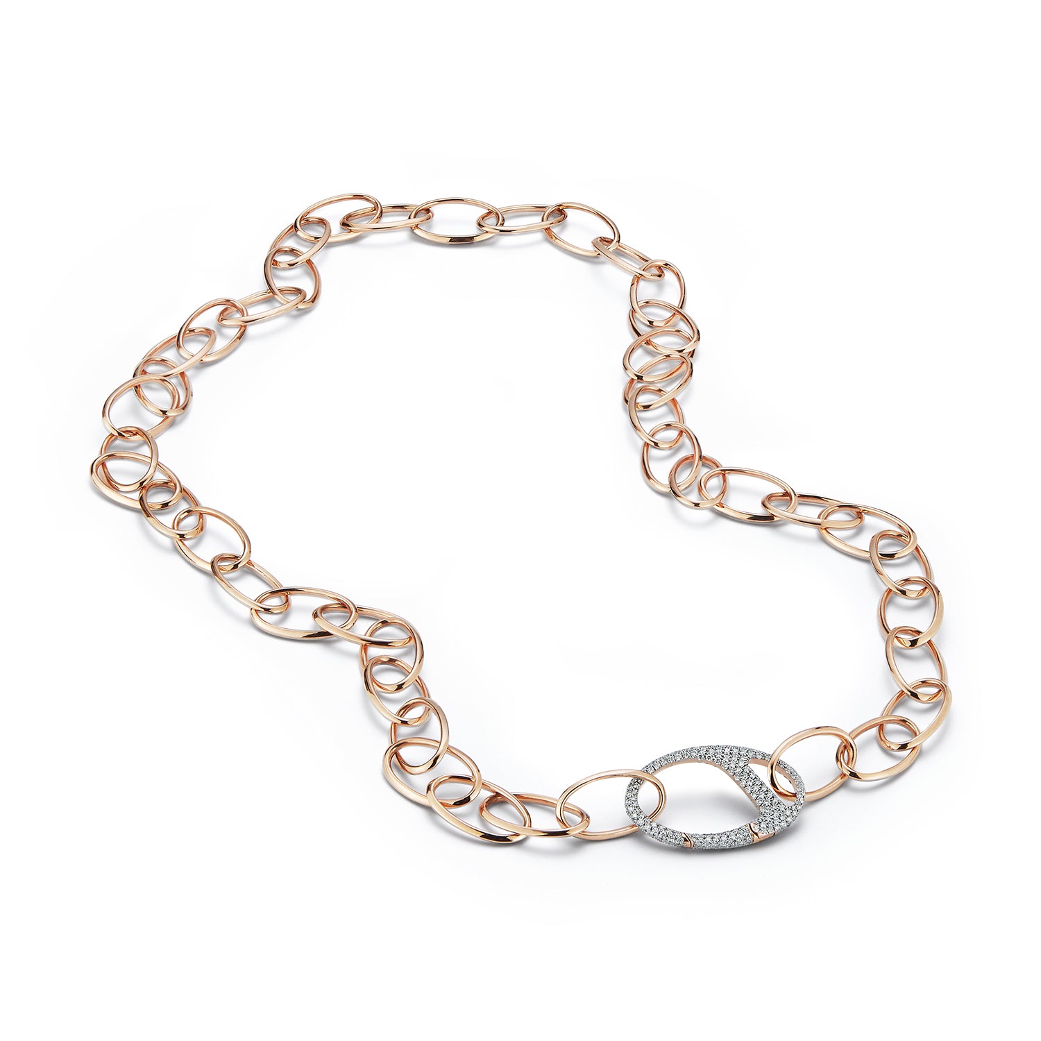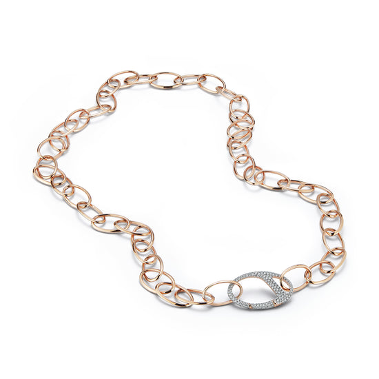GARNETT 18K GOLD AND DIAMOND LARGE OVAL LINK NECKLACE