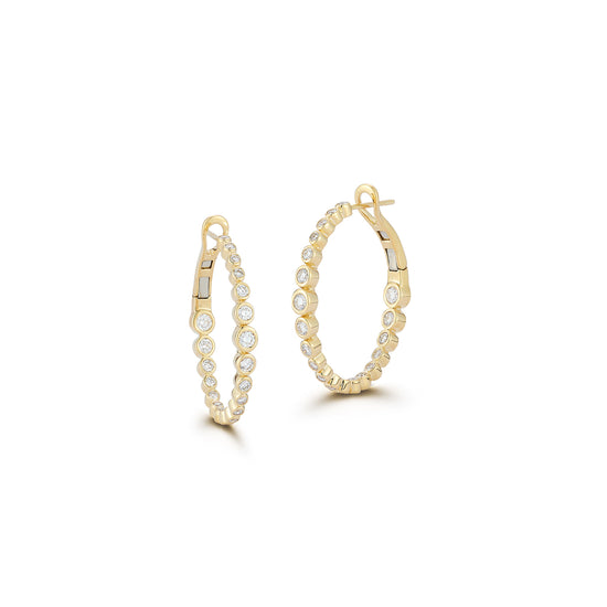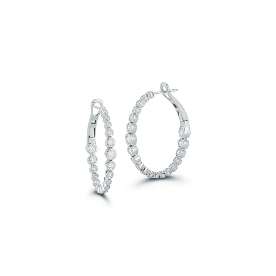 WF CLASSIC 18K BEZEL SET DIAMOND OVAL SMALL HOOP EARRINGS