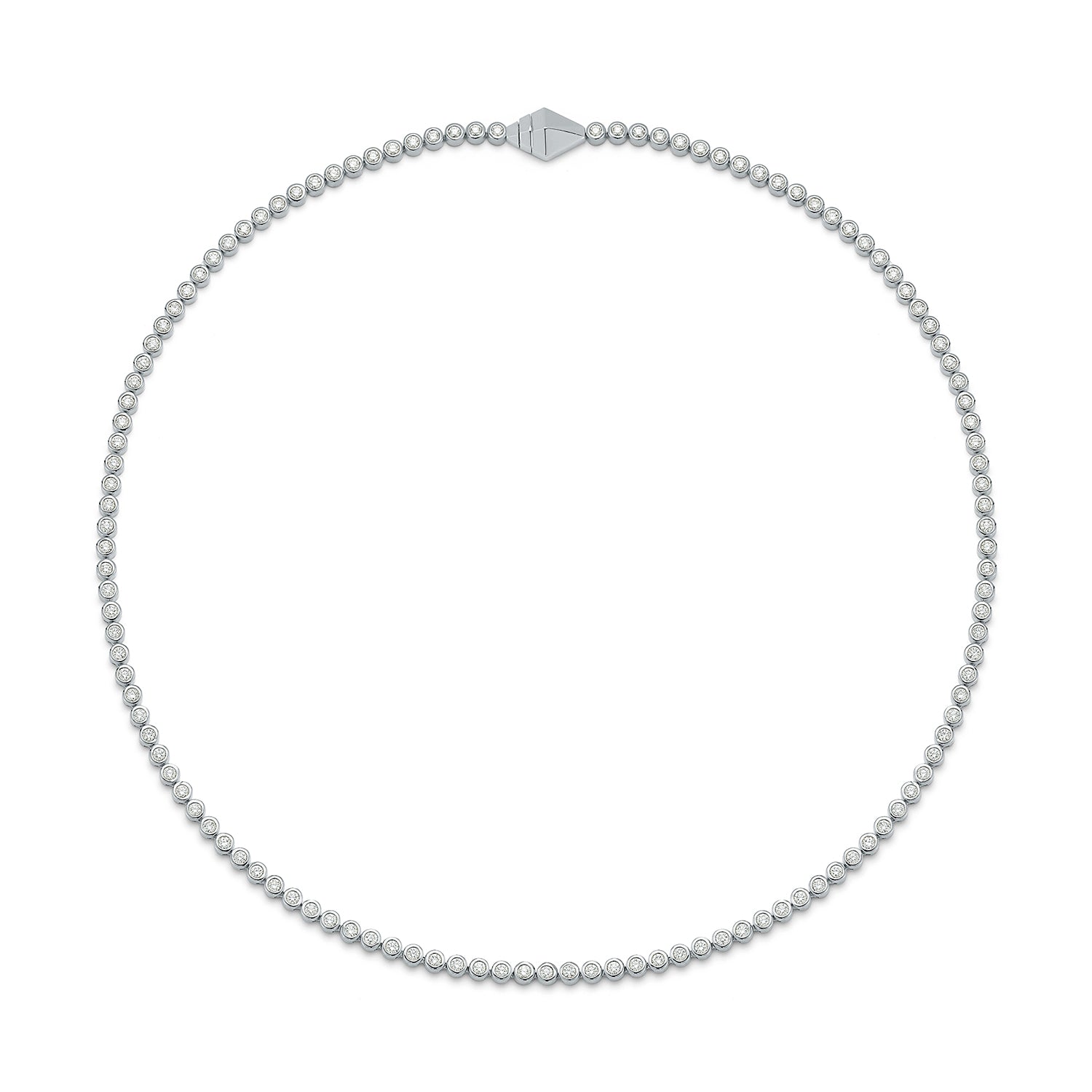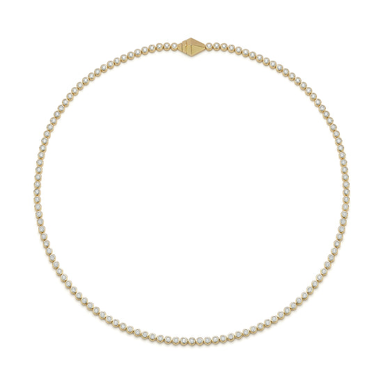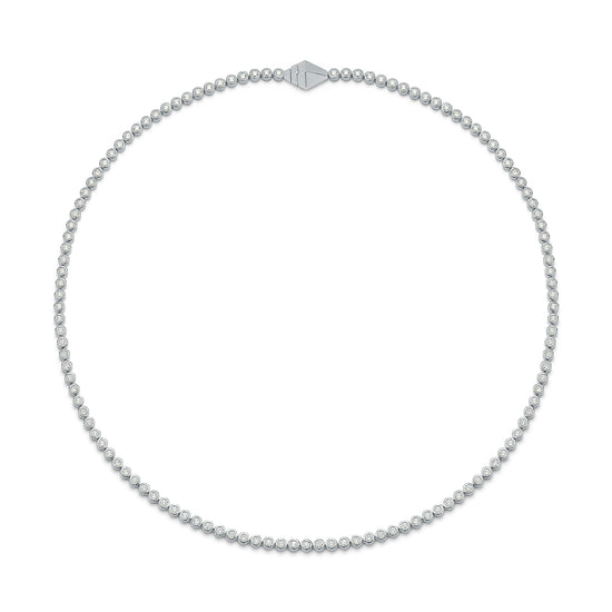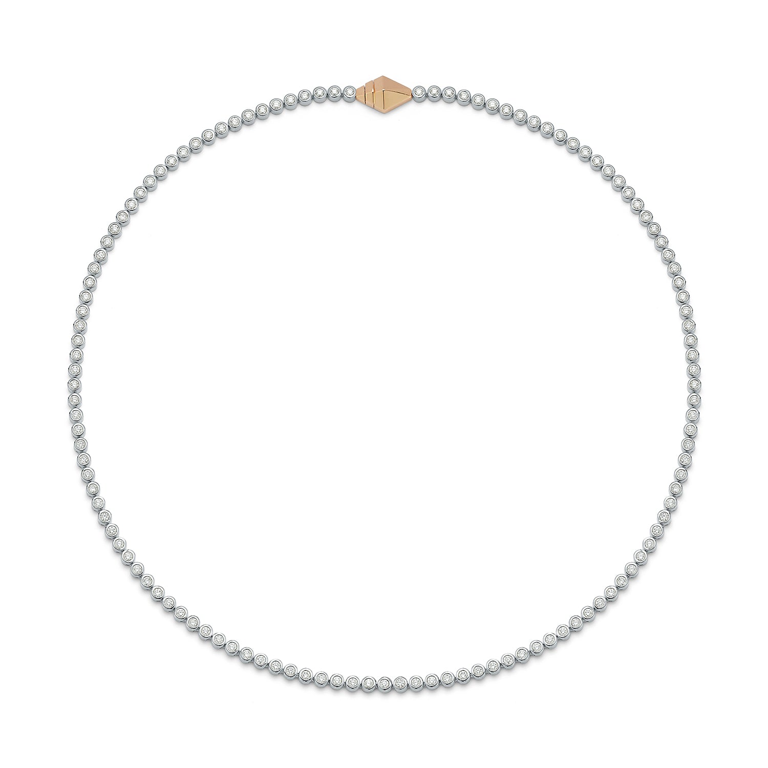 WF CLASSIC 18K BEZEL SET TENNIS NECKLACE WITH ORIGAMI CLASP