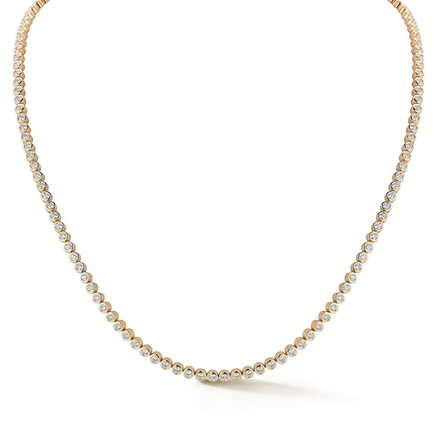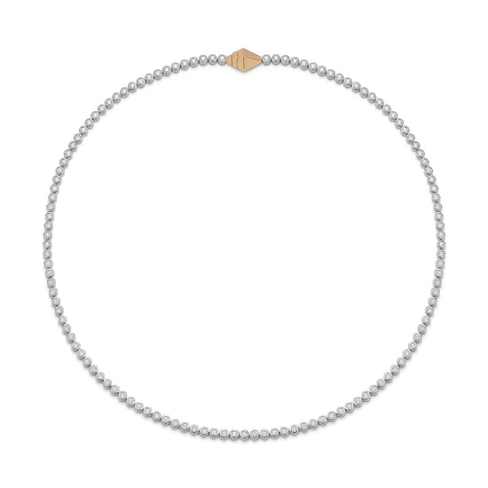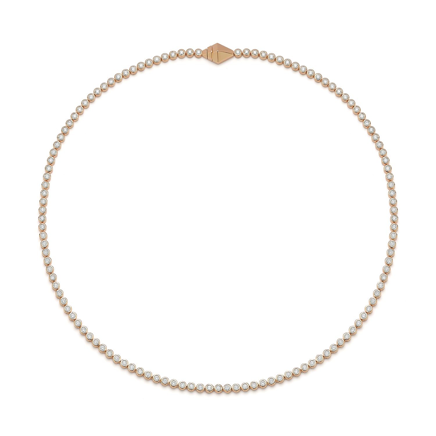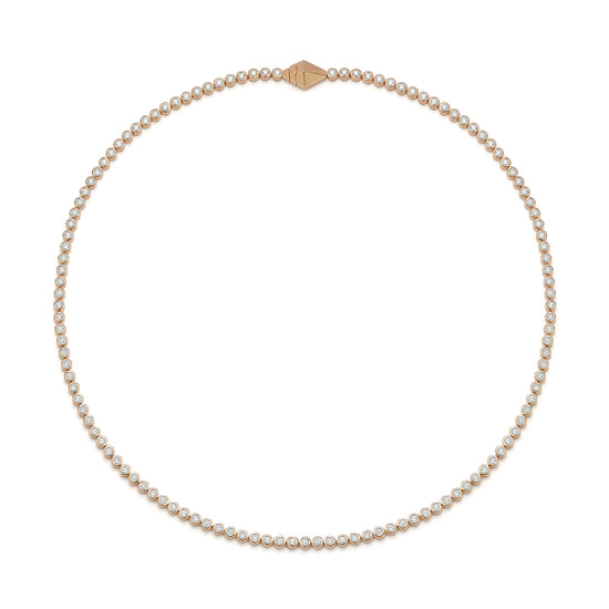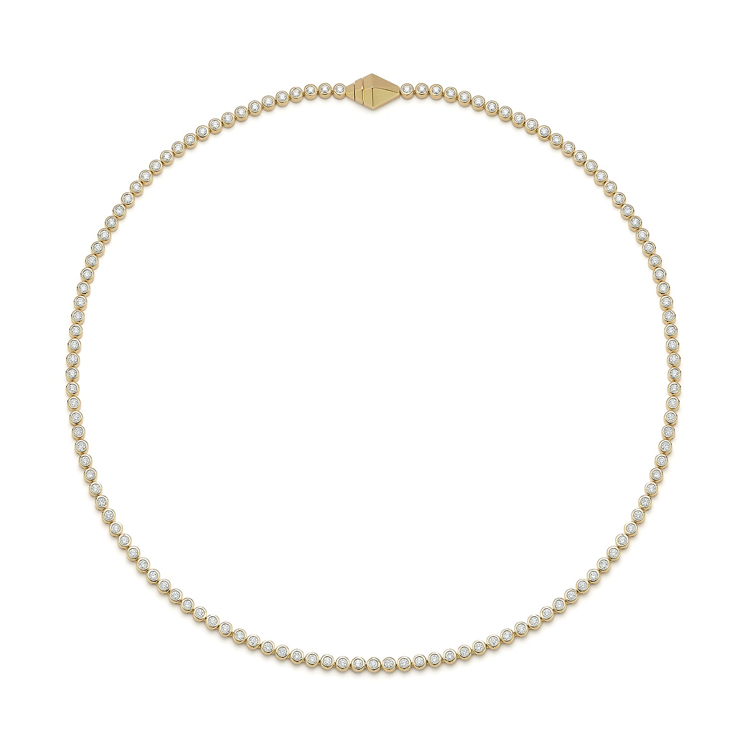 WF CLASSIC 18K BEZEL SET TENNIS NECKLACE WITH ORIGAMI CLASP