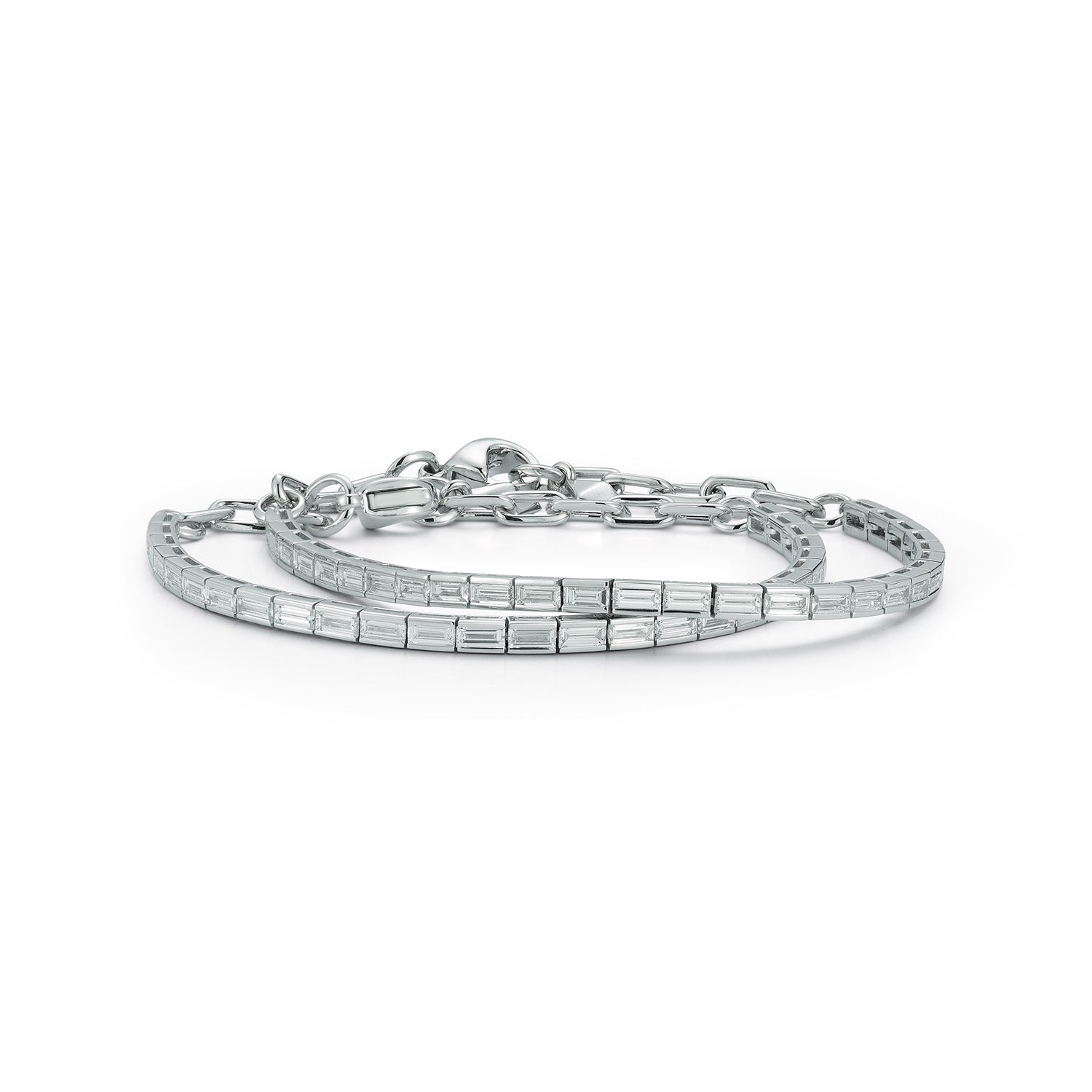 KEYNES 18K WHITE GOLD AND BAGUETTE DIAMOND TENNIS BRACELET